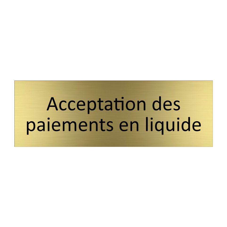 Panneau d'information avec le texte Acceptation des paiements en liquide.