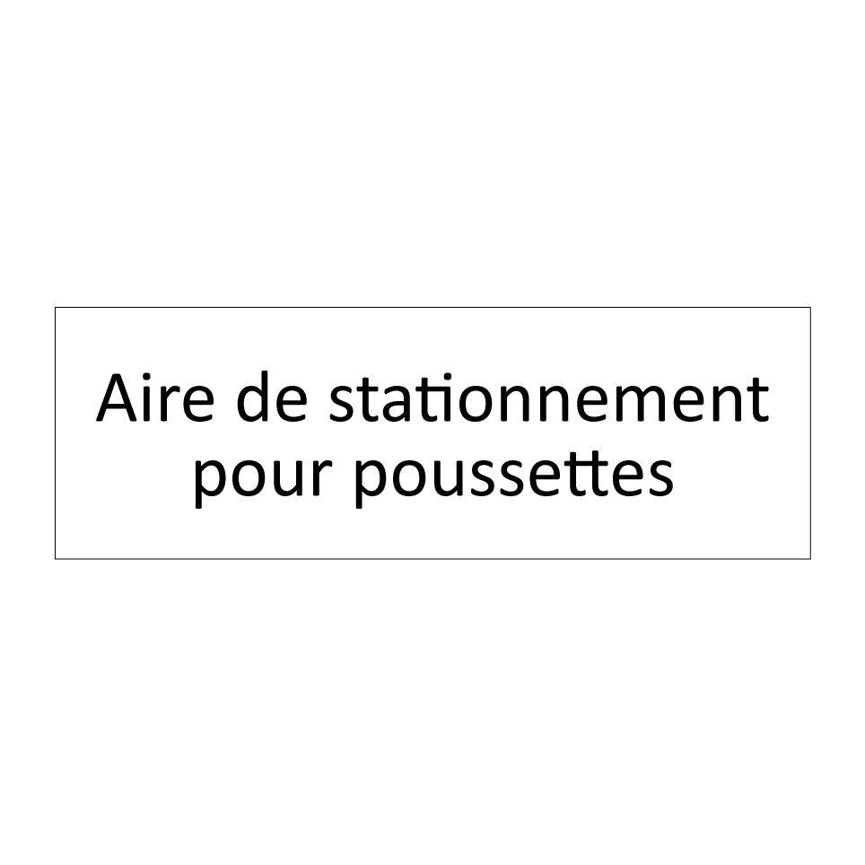 Panneau d'information avec le texte Aire de stationnement pour poussettes.