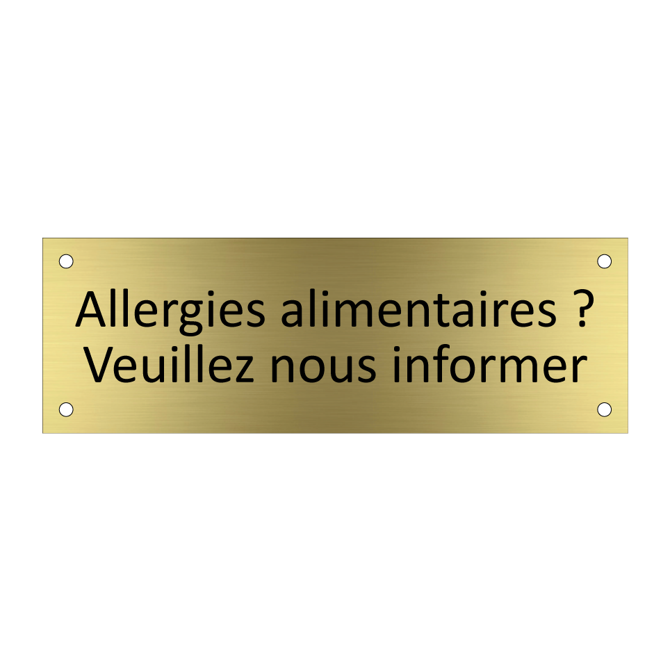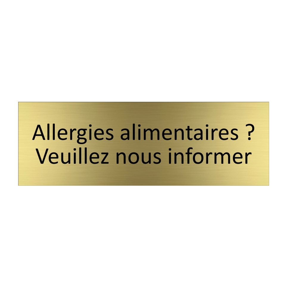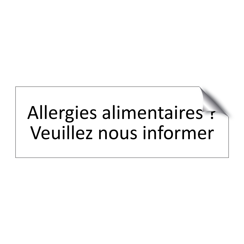 Panneau d'information avec le texte Allergies alimentaires ? Veuillez nous informer.