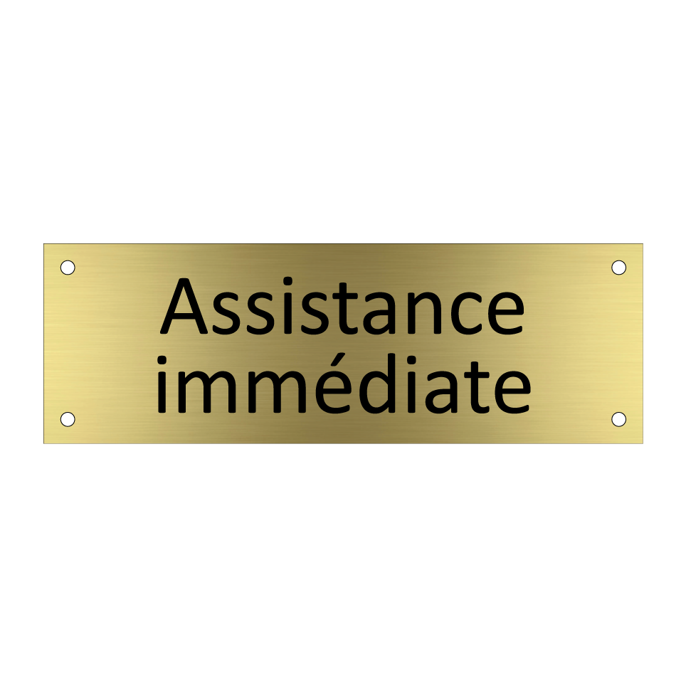 Panneau d'information avec le texte Assistance immédiate.