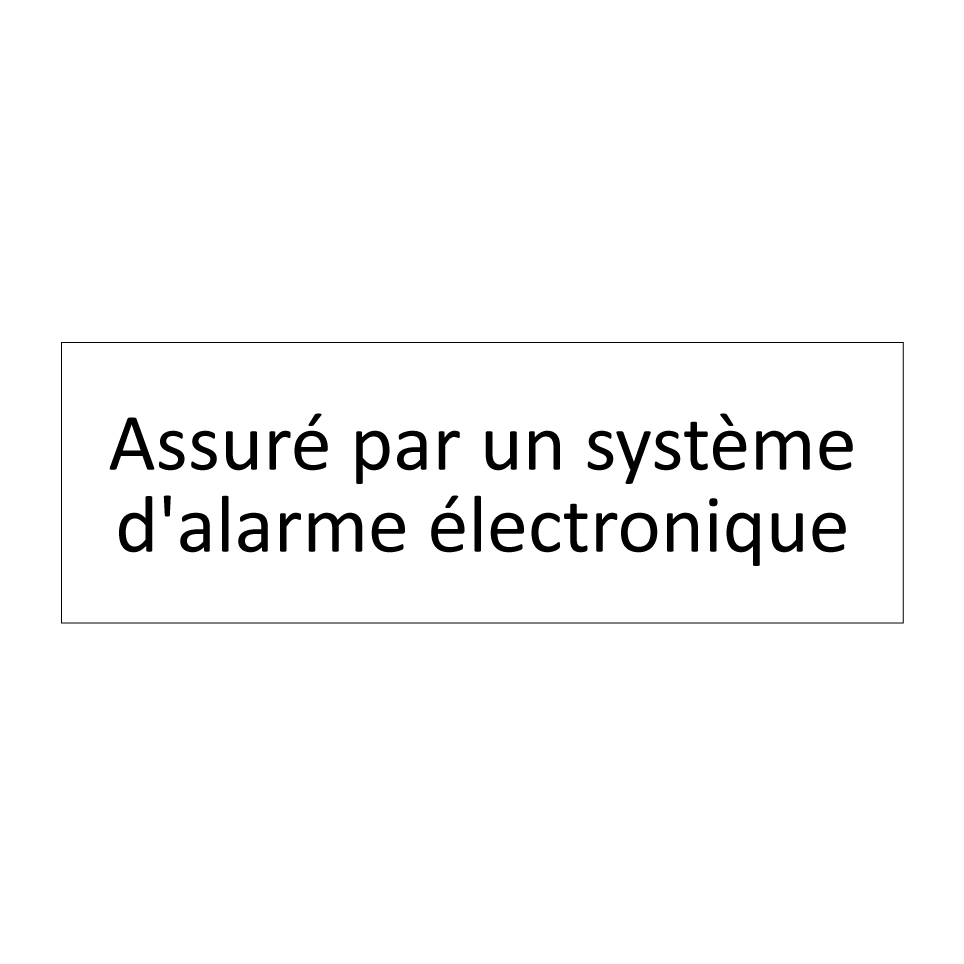 Panneau d'information avec le texte Assuré par un système d'alarme électronique.