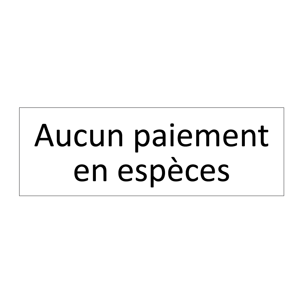 Panneau d'information avec le texte Aucun paiement en espèces.