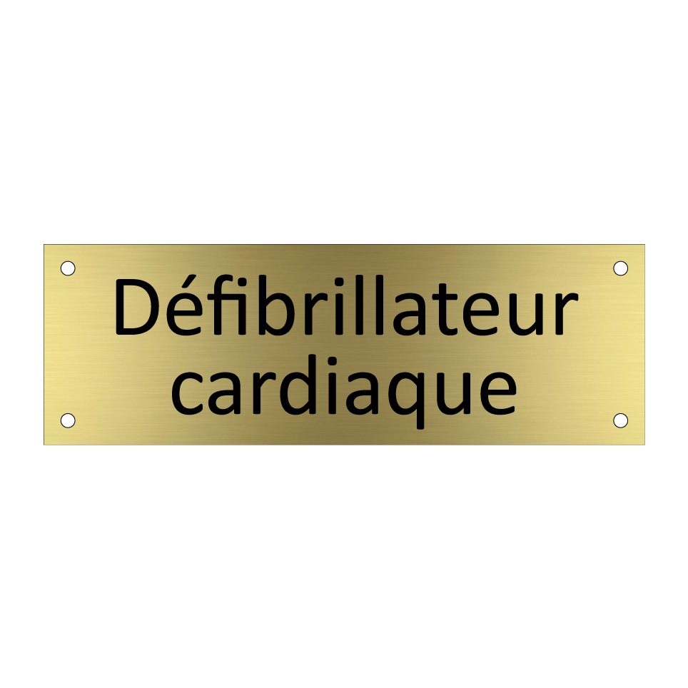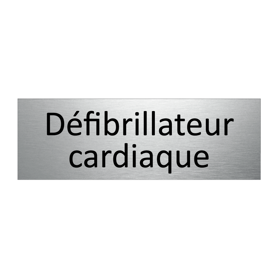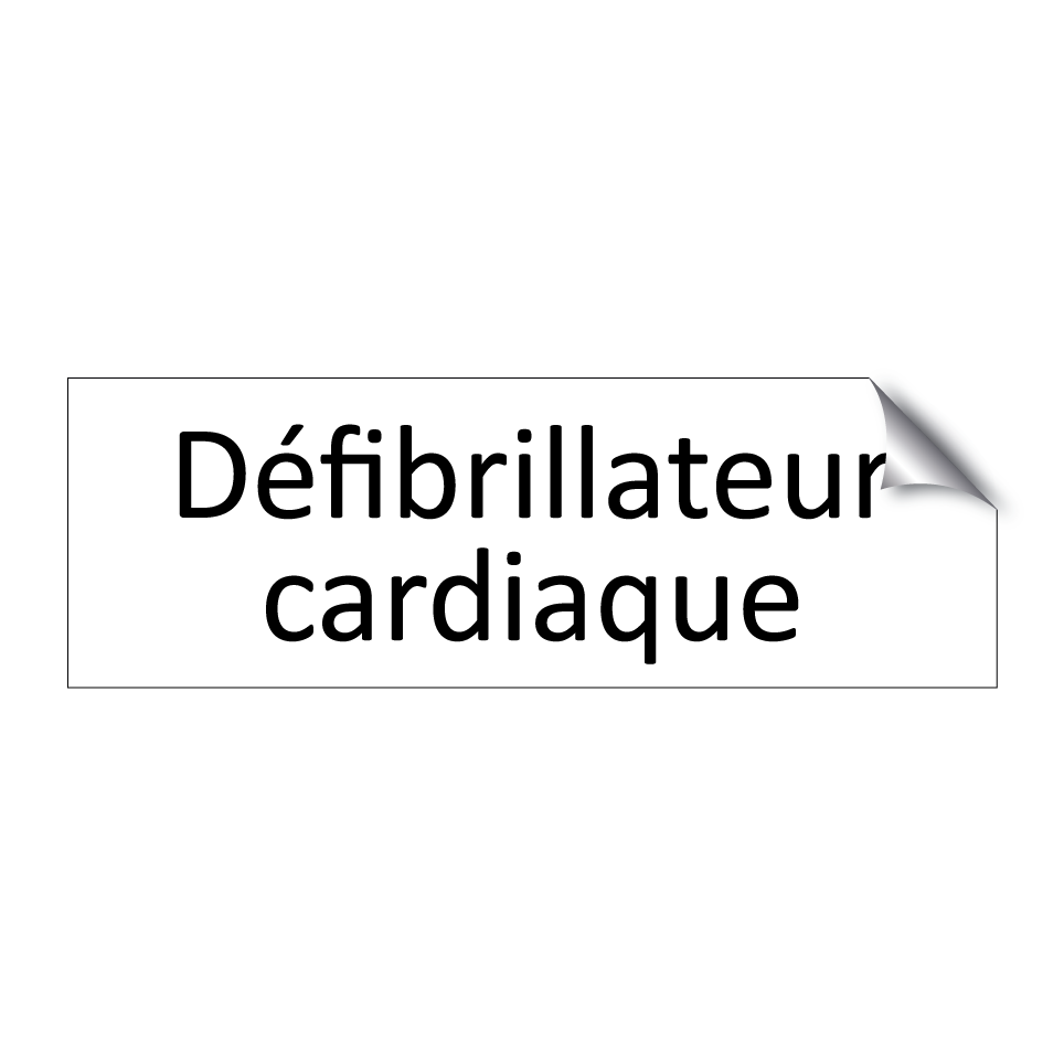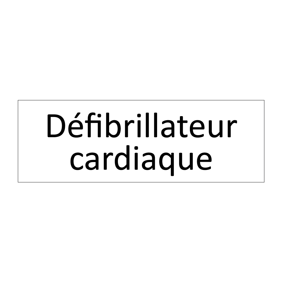 Panneau d'information avec le texte Défibrillateur cardiaque.
