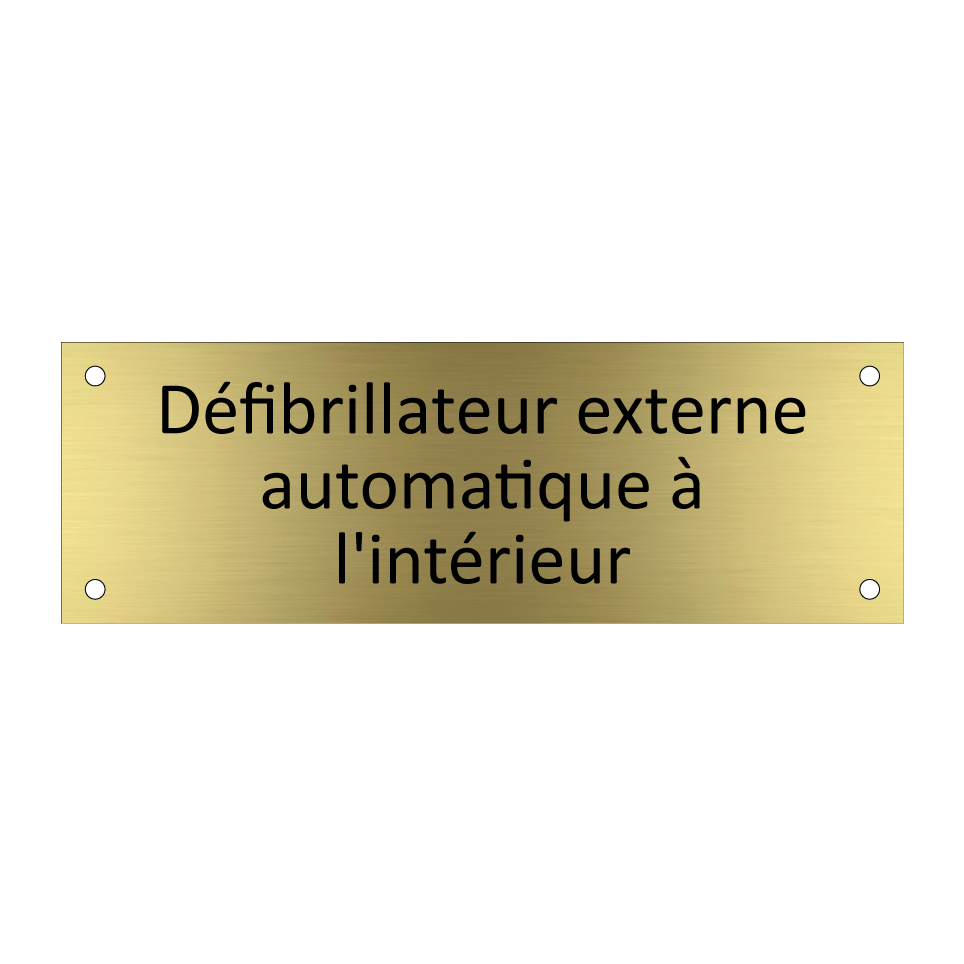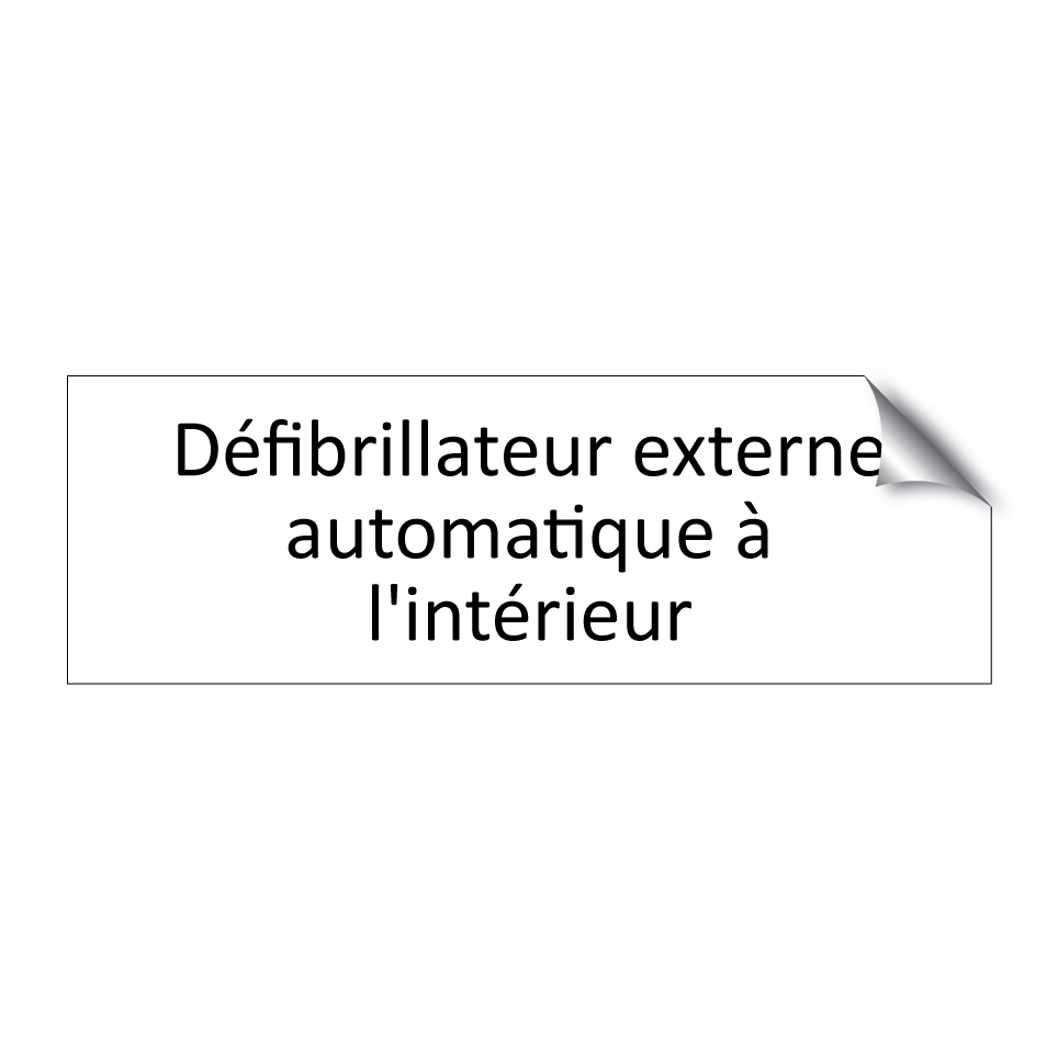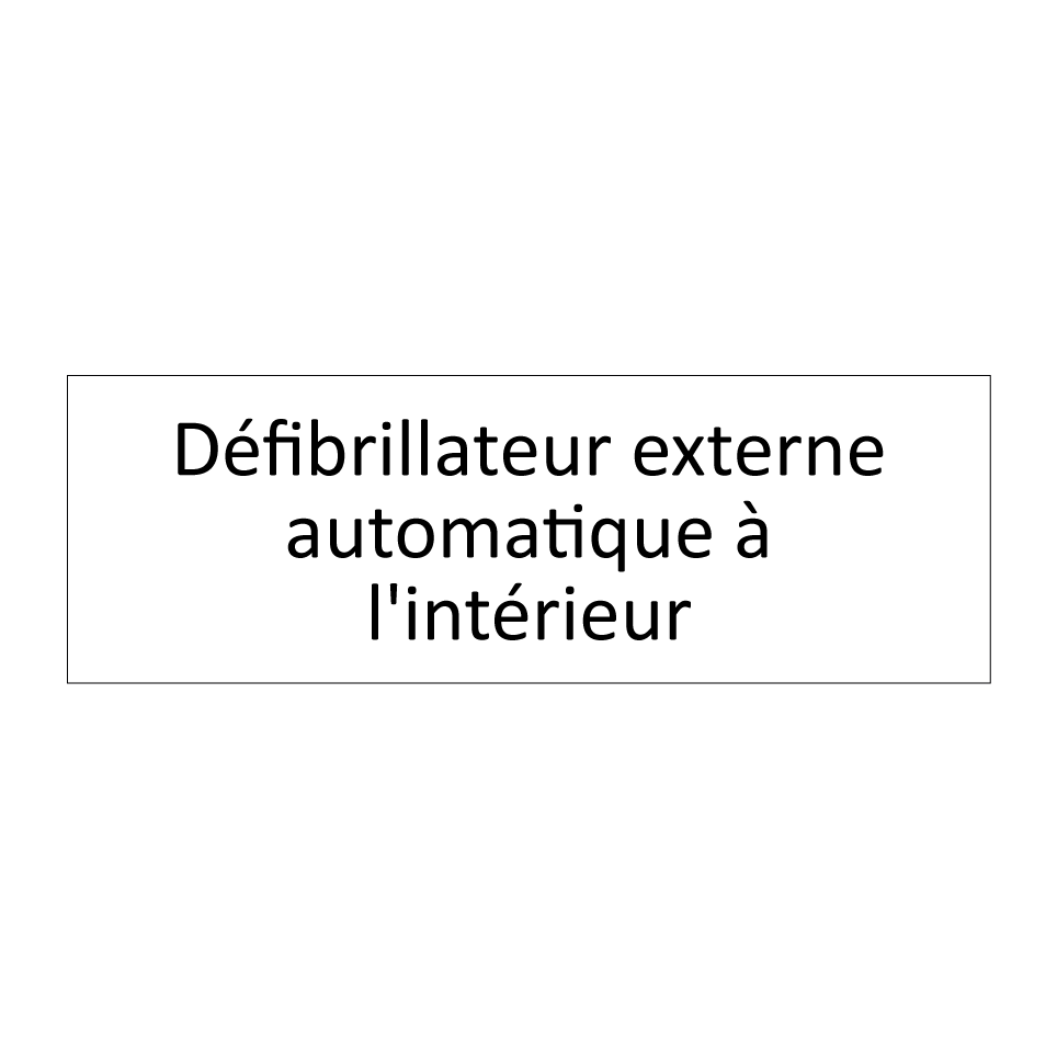 Panneau d'information avec le texte Défibrillateur externe automatique à l'intérieur.