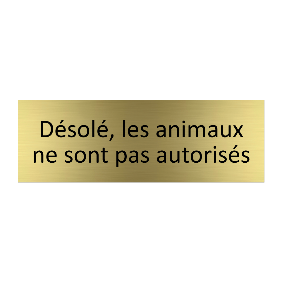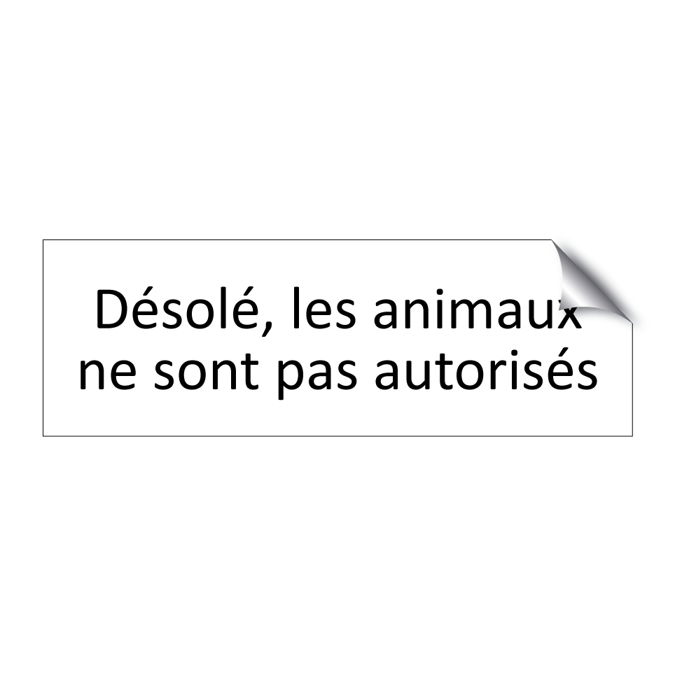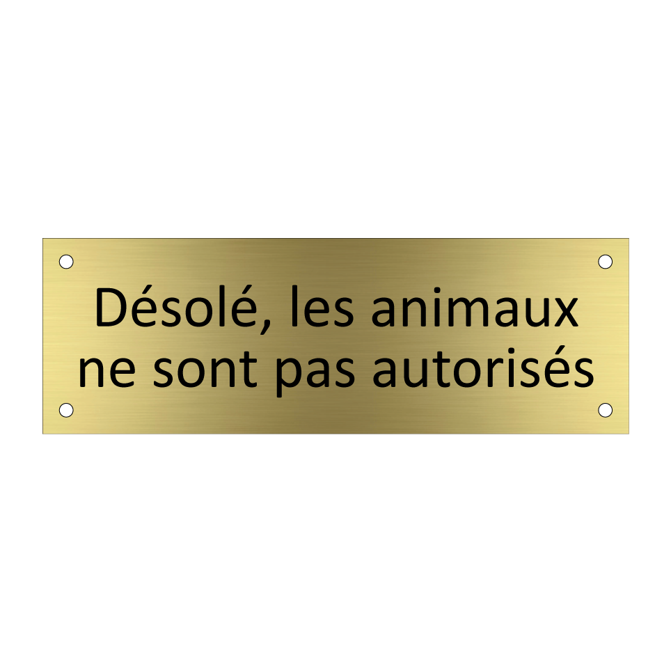 Panneau d'information avec le texte Désolé, les animaux ne sont pas autorisés.