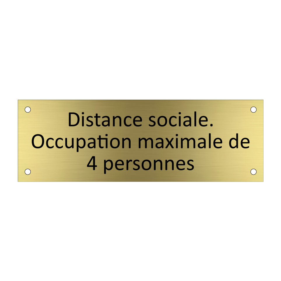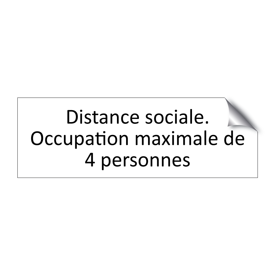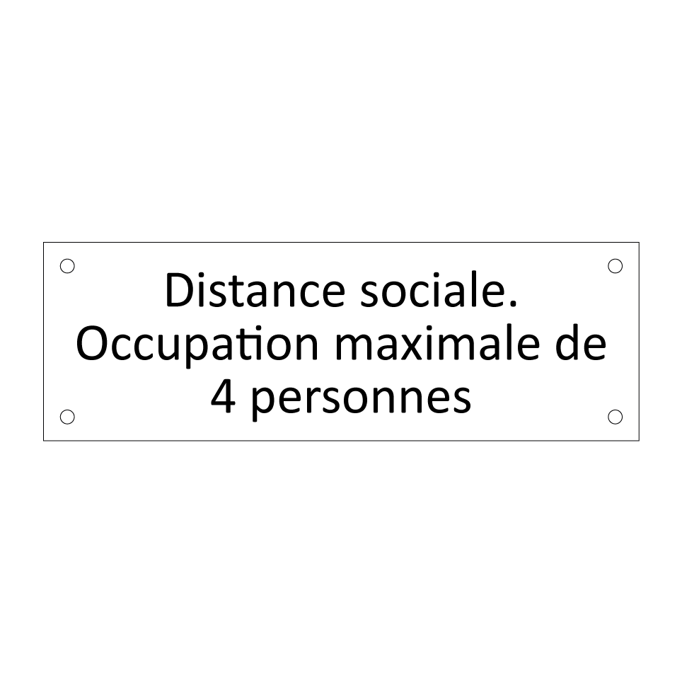 Panneau d'information avec le texte Distance sociale. Occupation maximale de 4 personnes.