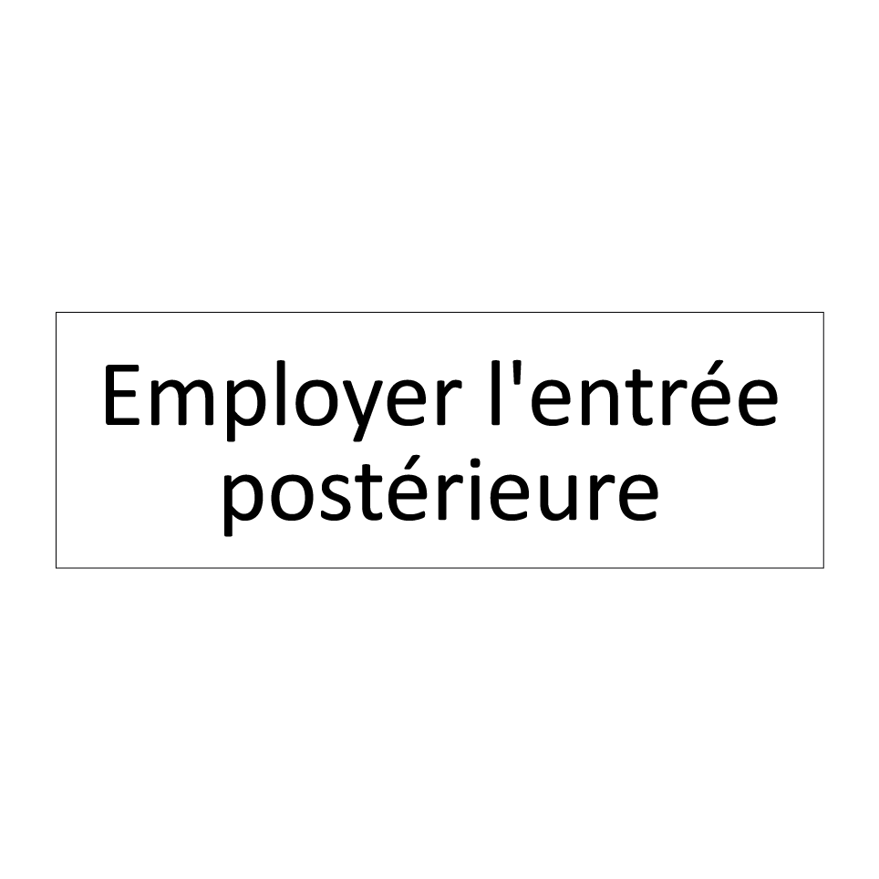 Panneau d'information avec le texte Employer l'entrée postérieure.