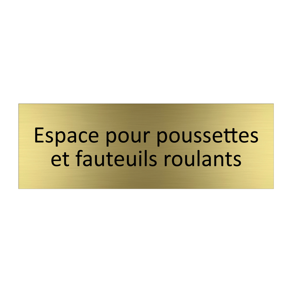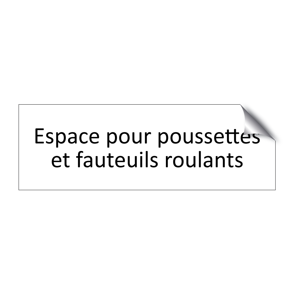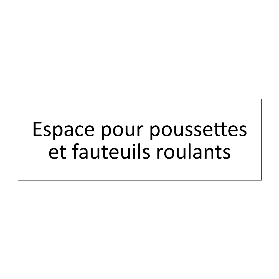 Panneau d'information avec le texte Espace pour poussettes et fauteuils roulants.