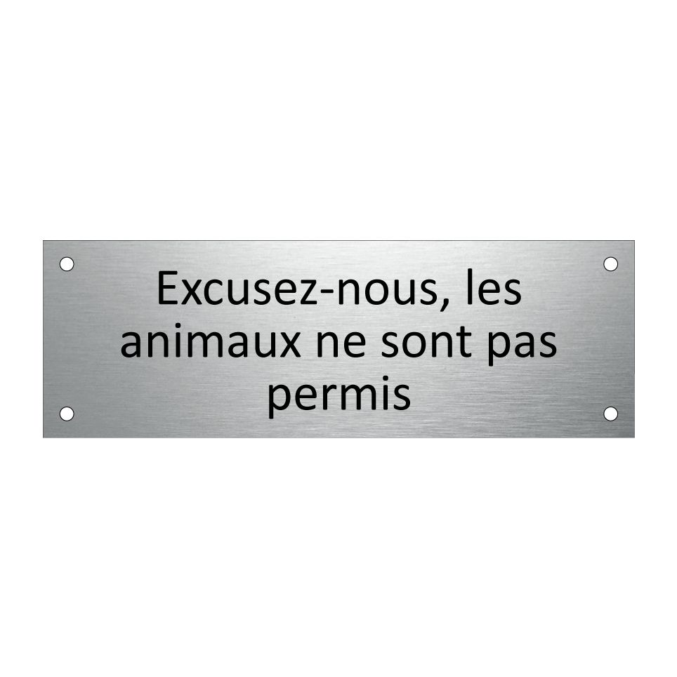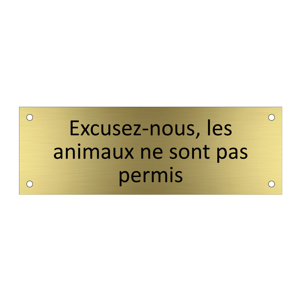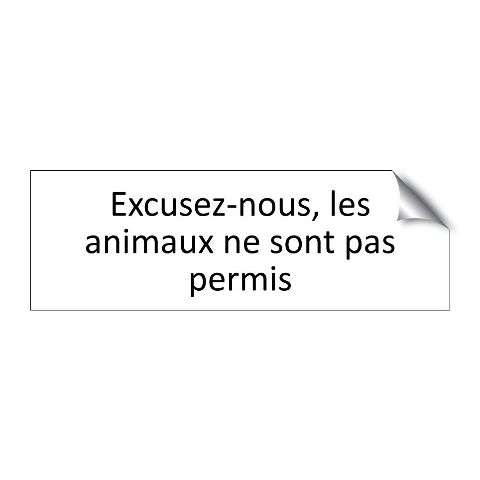 Panneau d'information avec le texte Excusez-nous, les animaux ne sont pas permis.
