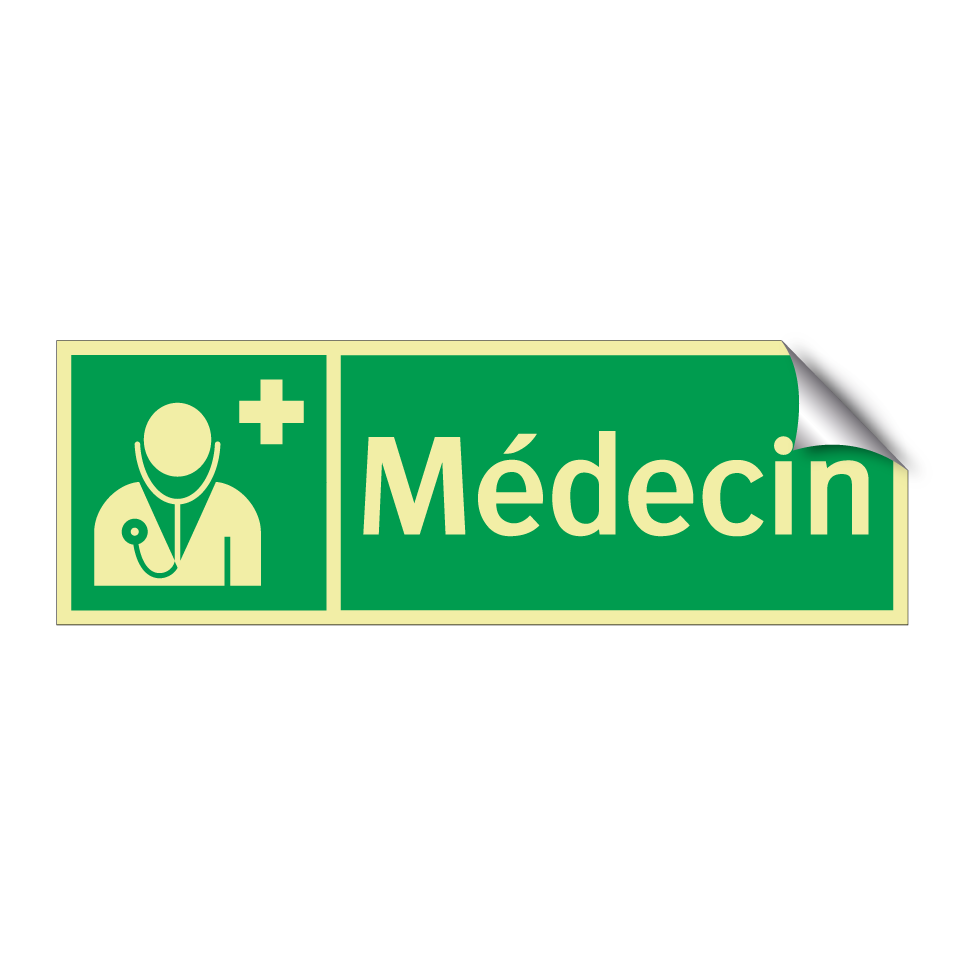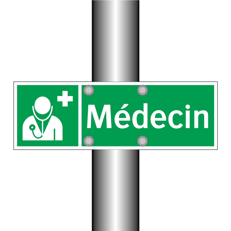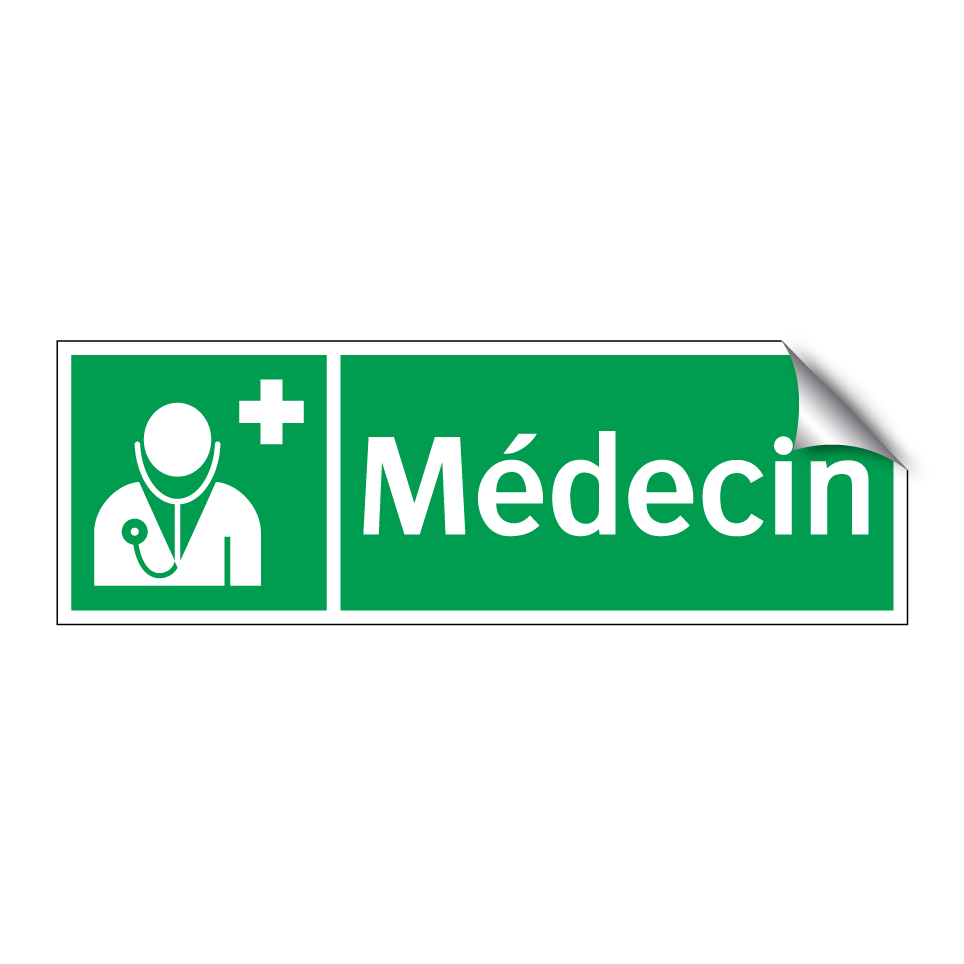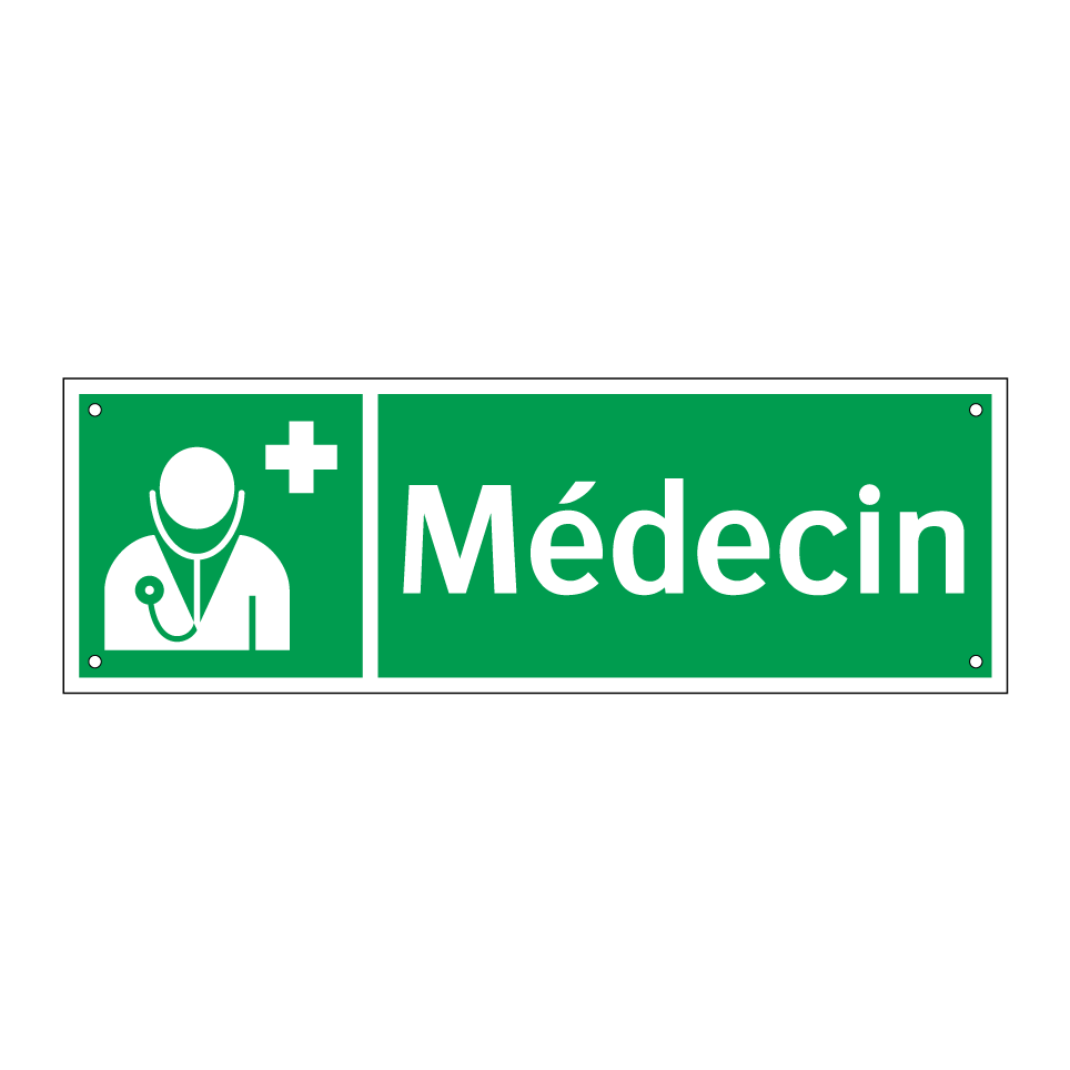 Panneau de secours avec le texte Médecin et une symbolique claire