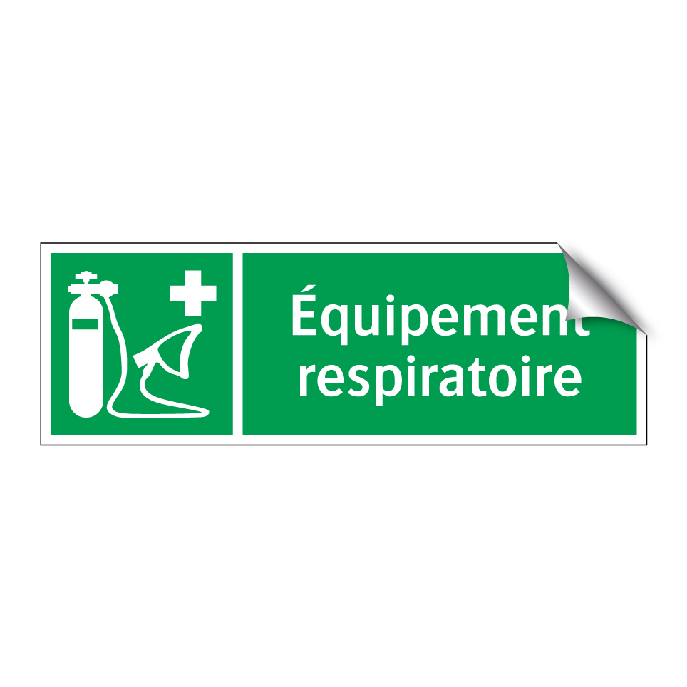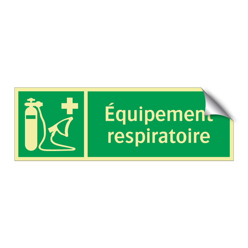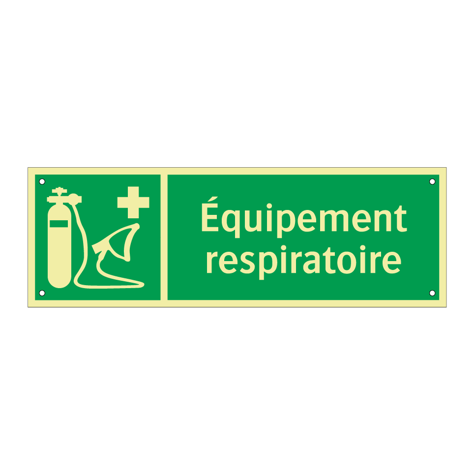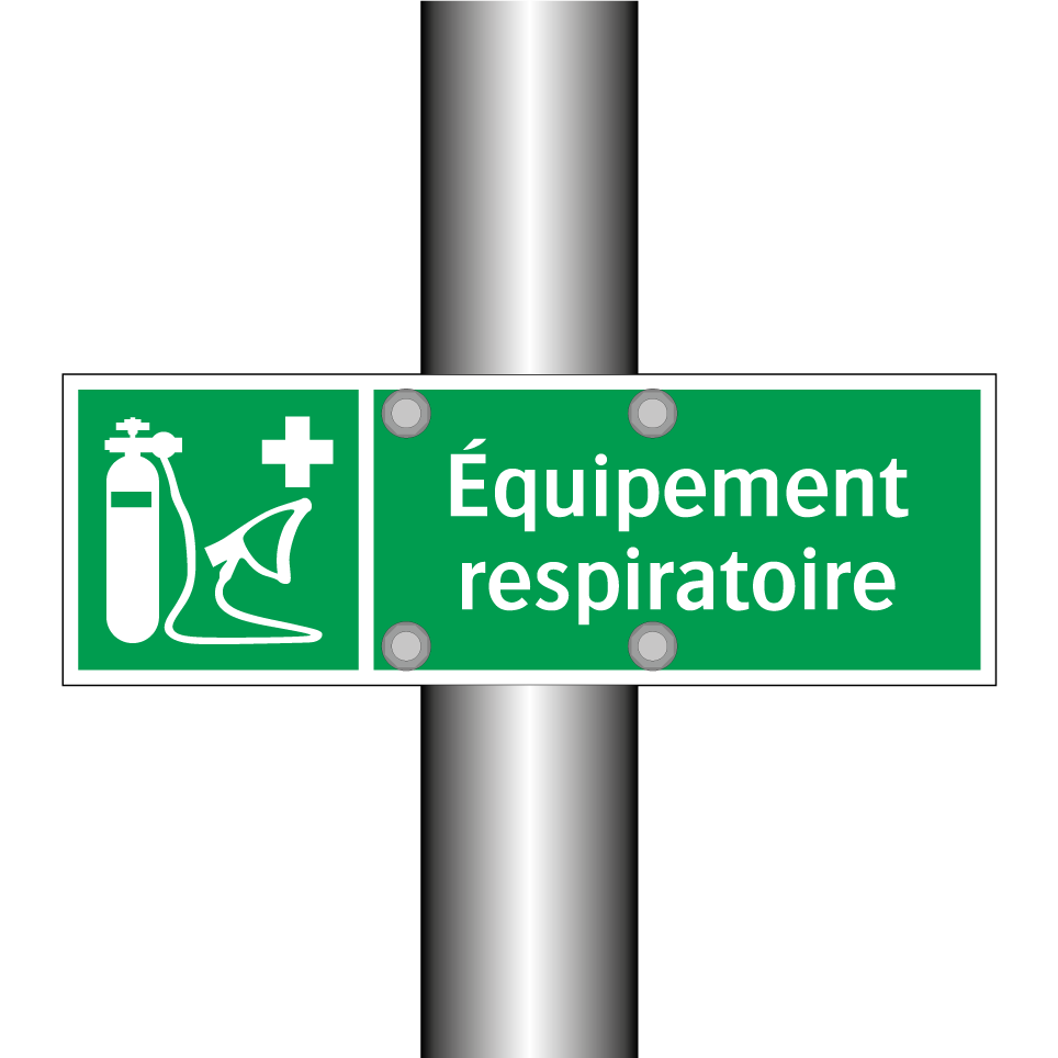 Panneau de secours avec le texte Équipement respiratoire et une symbolique claire
