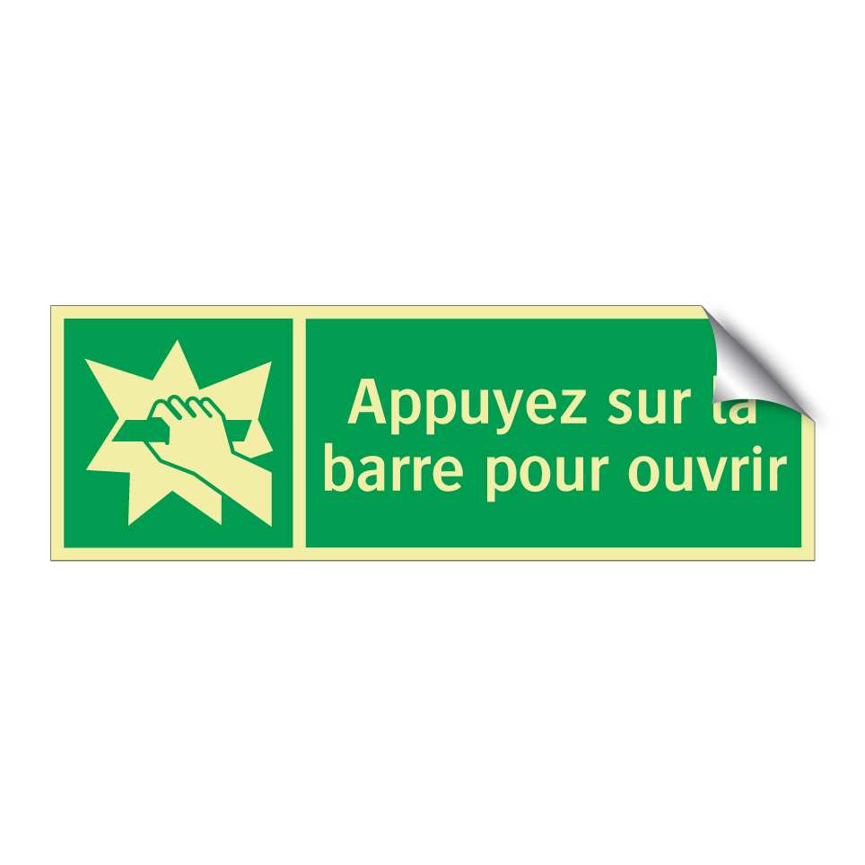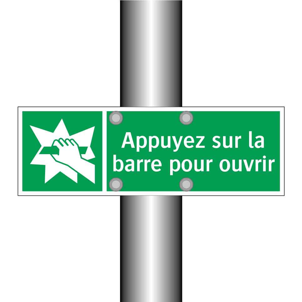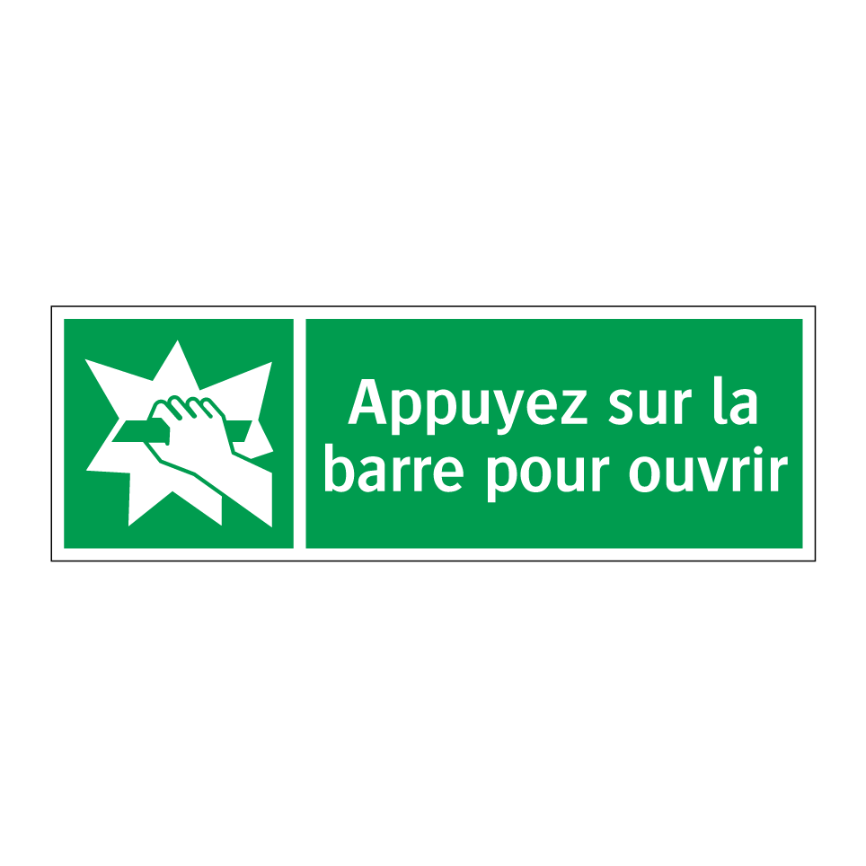 Panneau de secours avec le texte Appuyez sur la barre pour ouvrir et une symbolique claire