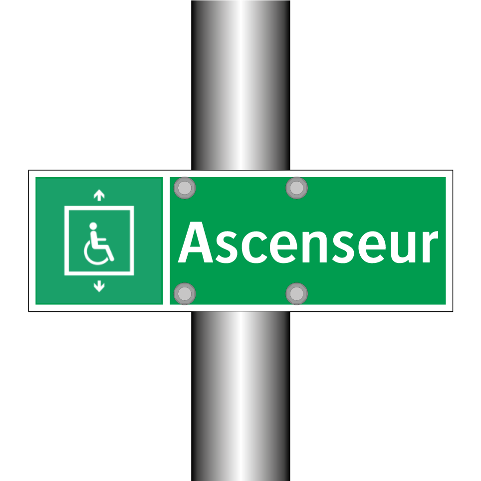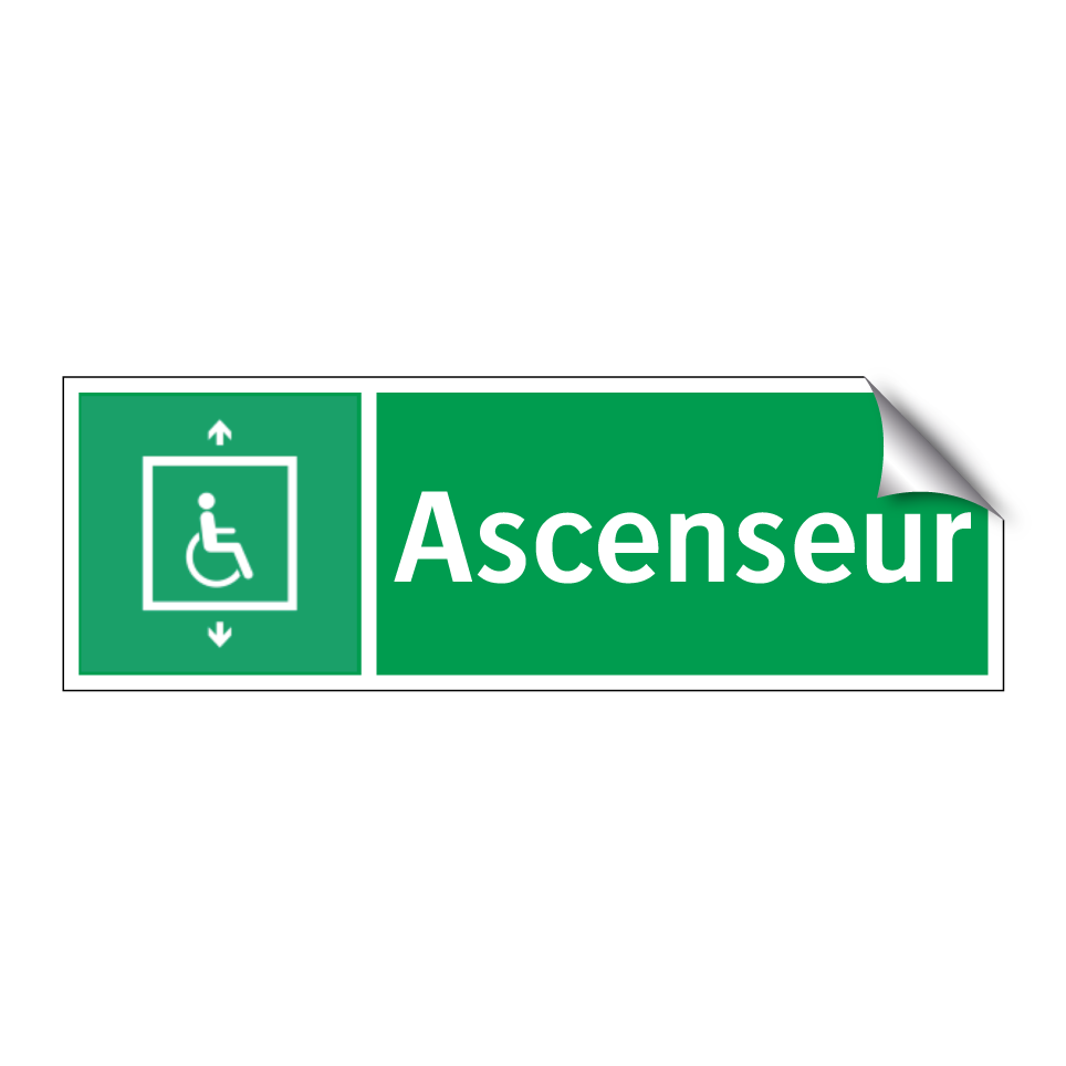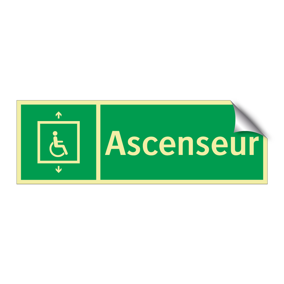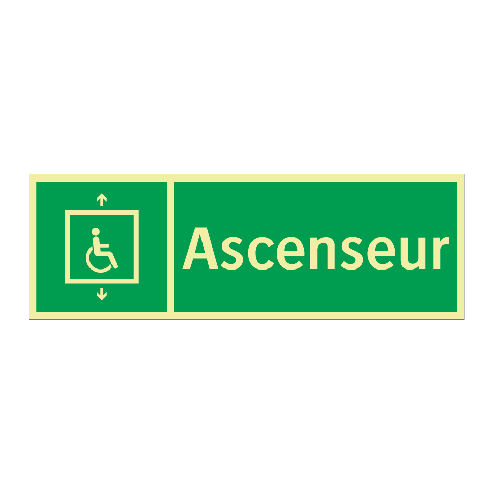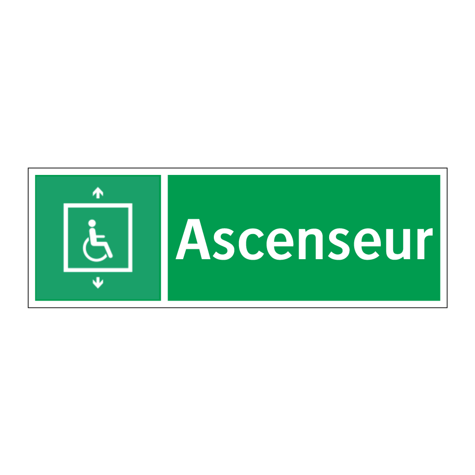Panneau de secours avec le texte Ascenseur et une symbolique claire