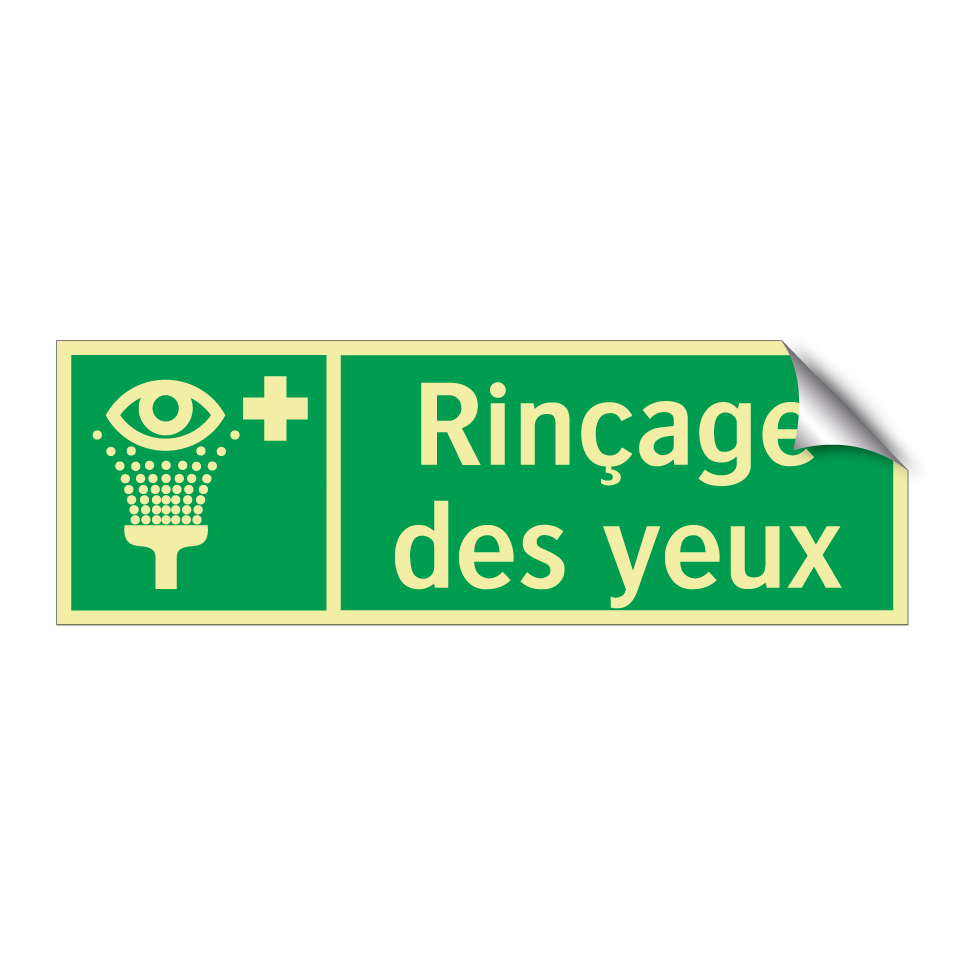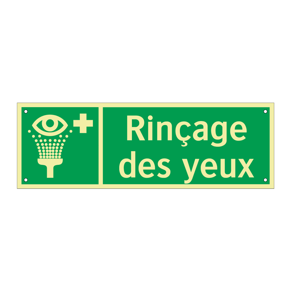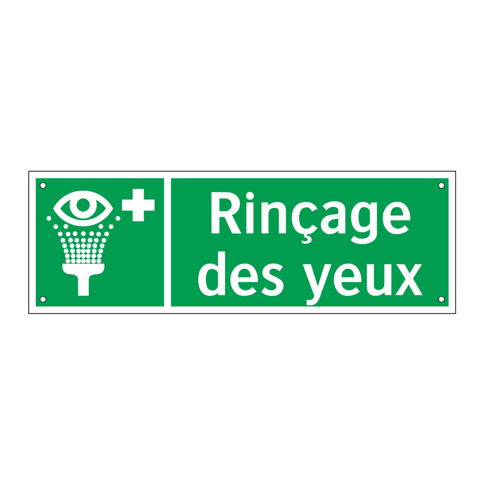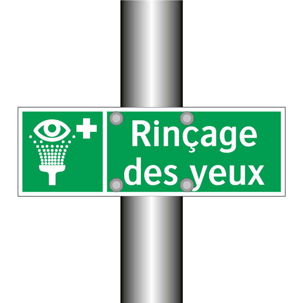 Panneau de secours avec le texte Rinçage des yeux et une symbolique claire