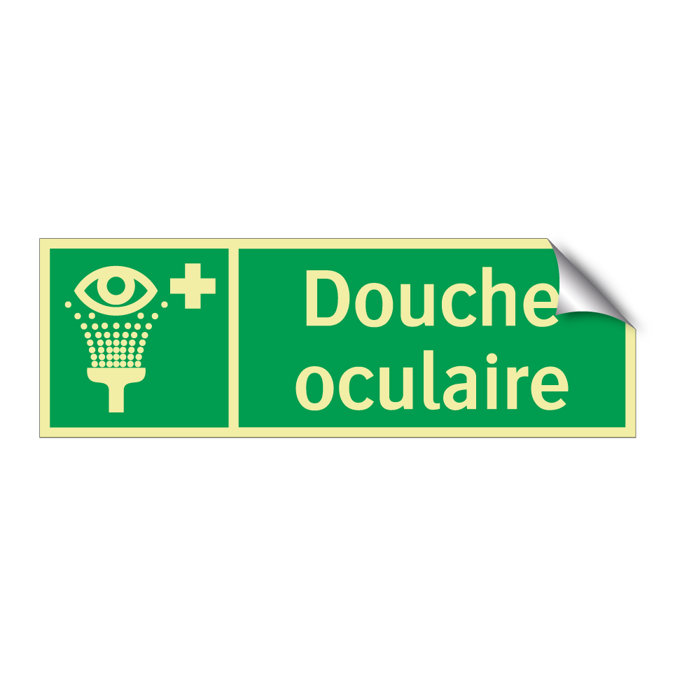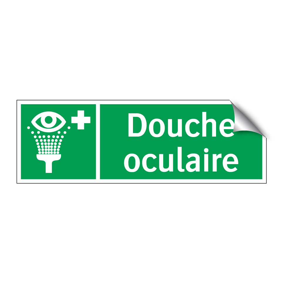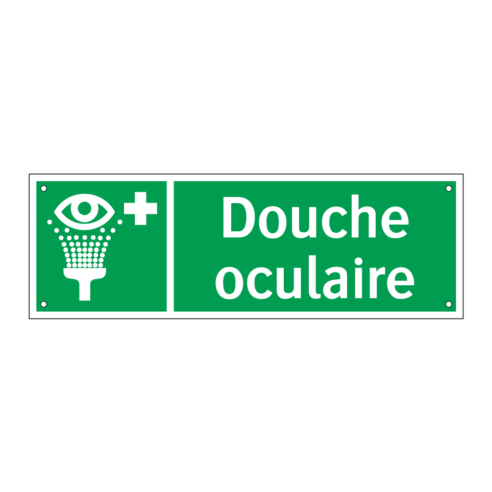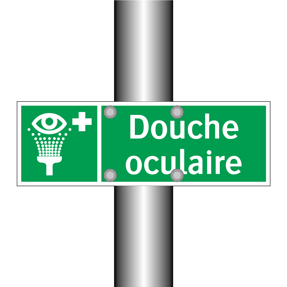 Panneau de secours avec le texte Douche oculaire et une symbolique claire