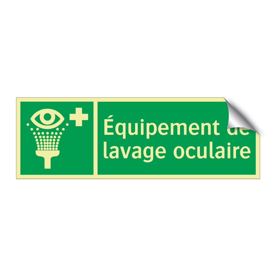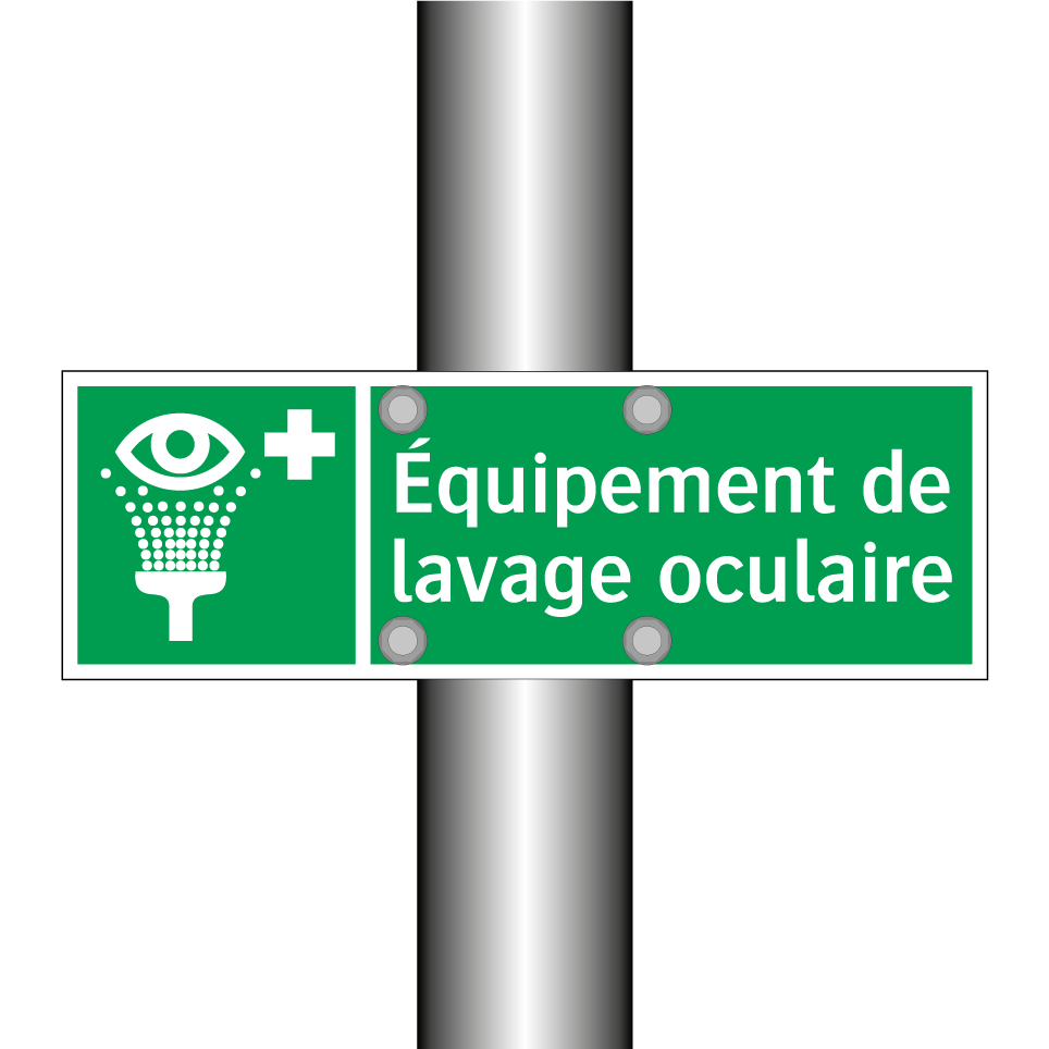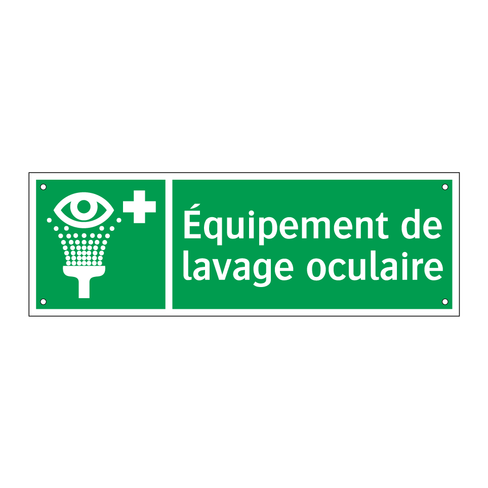 Panneau de secours avec le texte Équipement de lavage oculaire et une symbolique claire