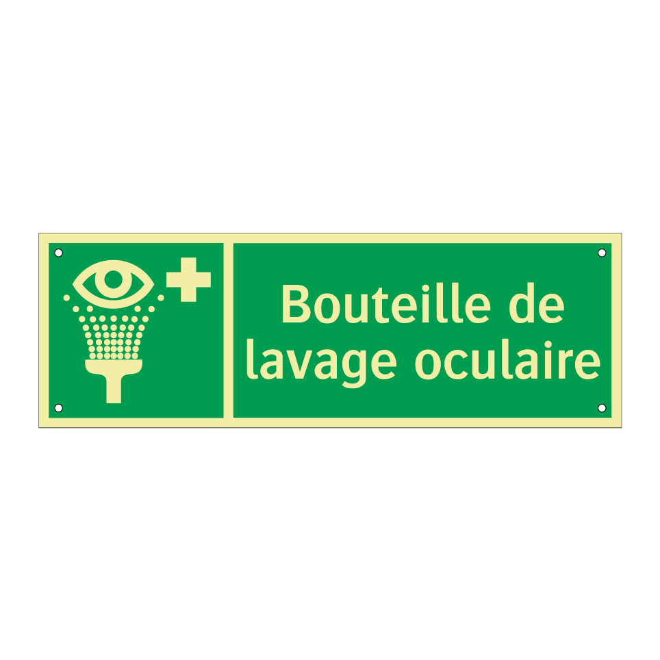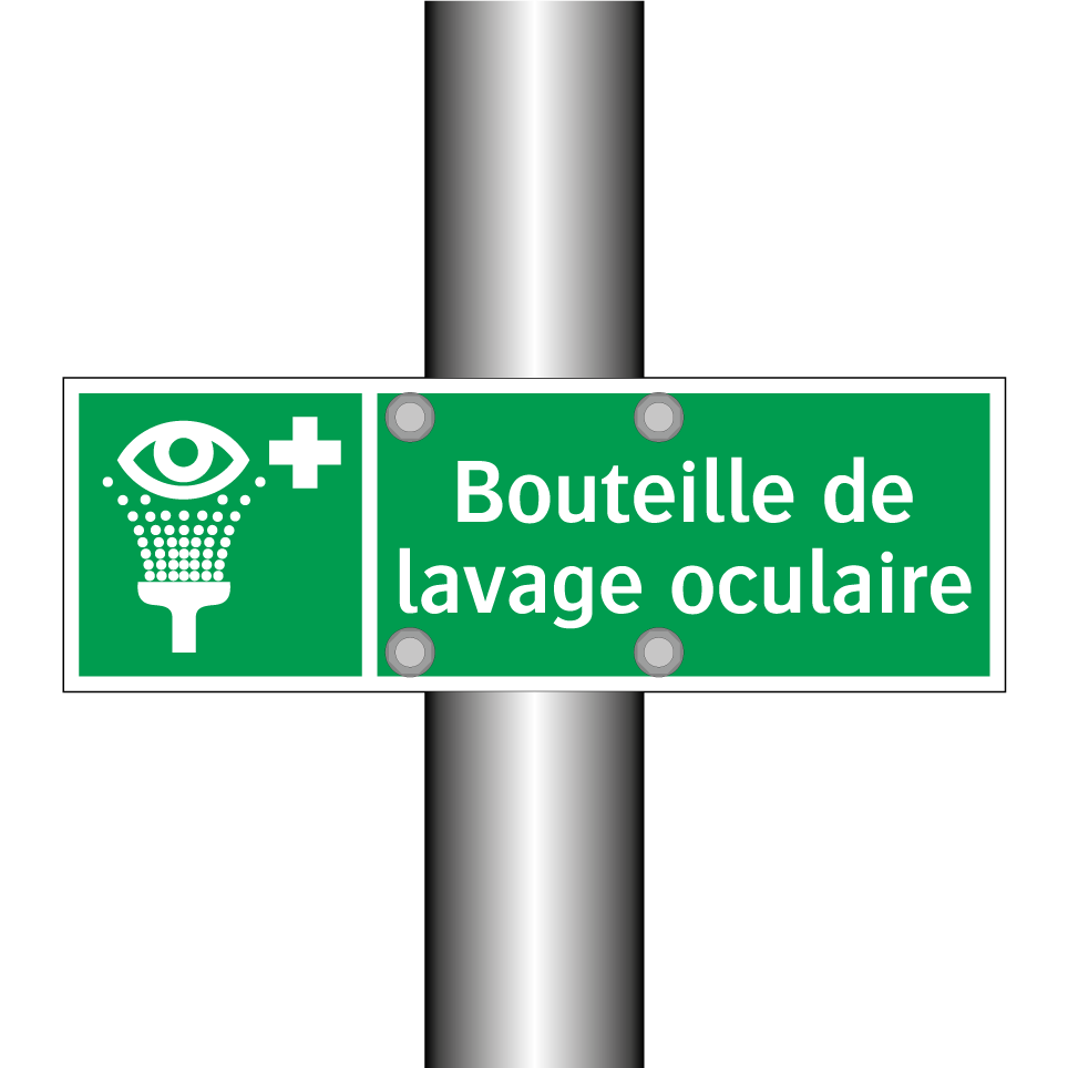 Panneau de secours avec le texte Bouteille de lavage oculaire et une symbolique claire