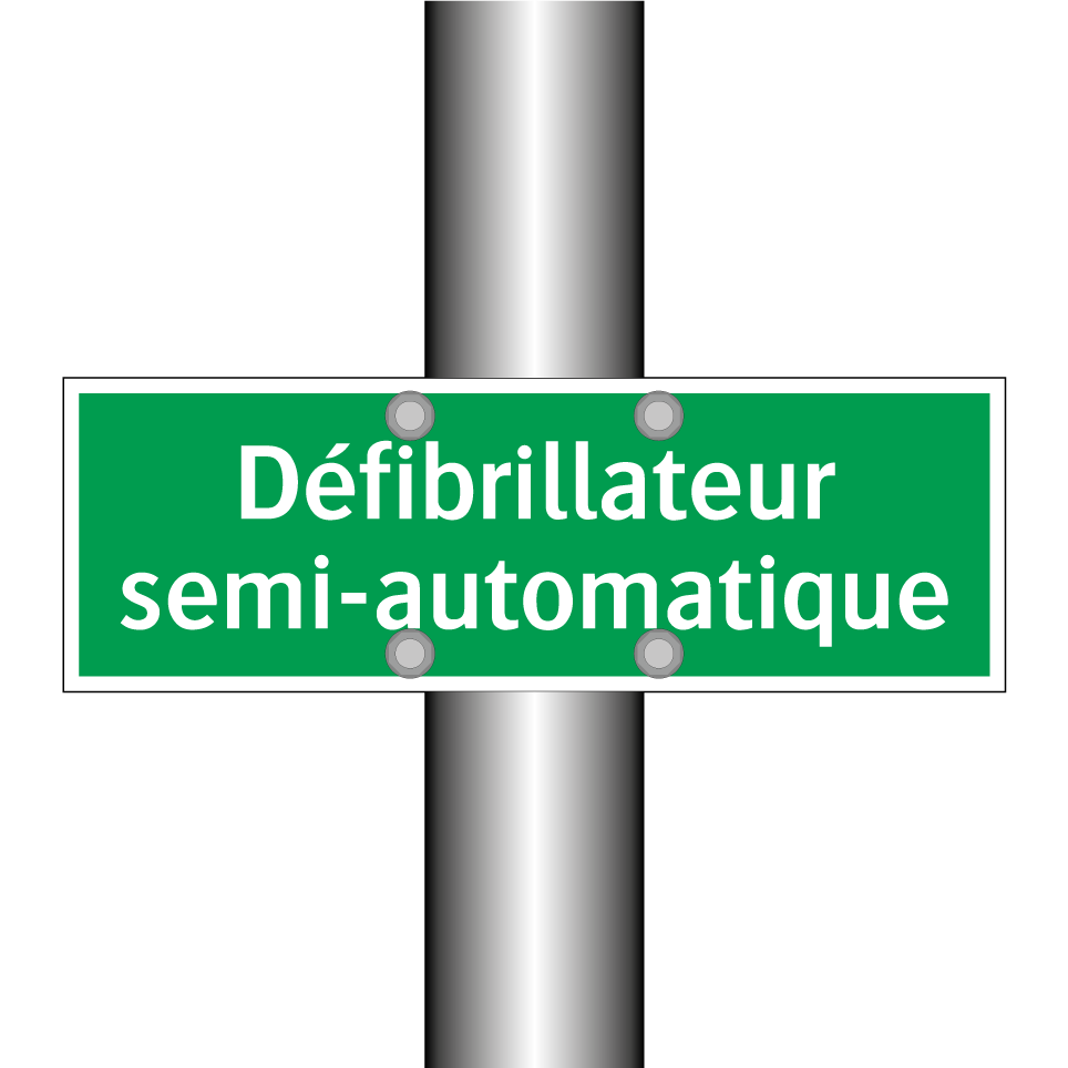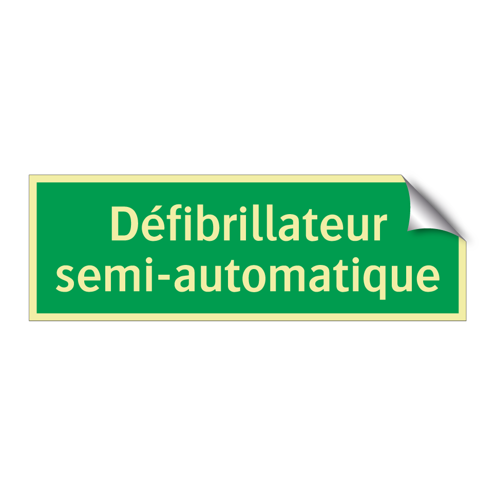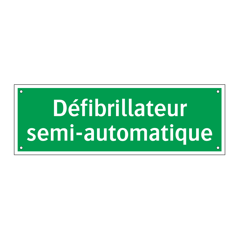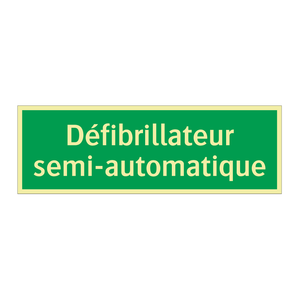 Panneau de secours avec le texte Défibrillateur semi-automatique