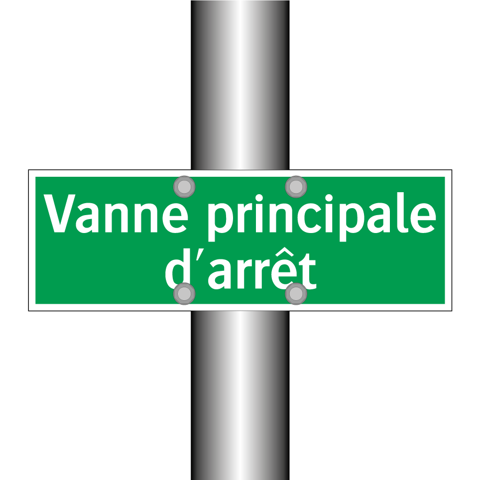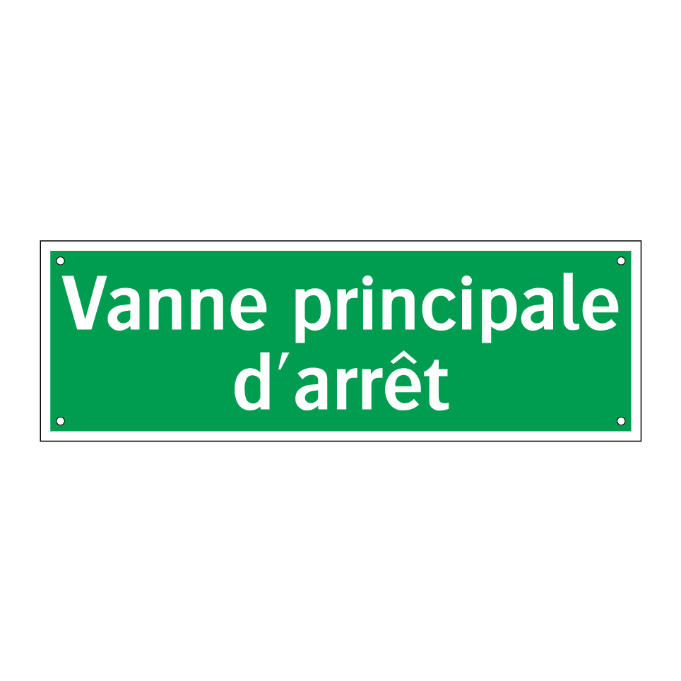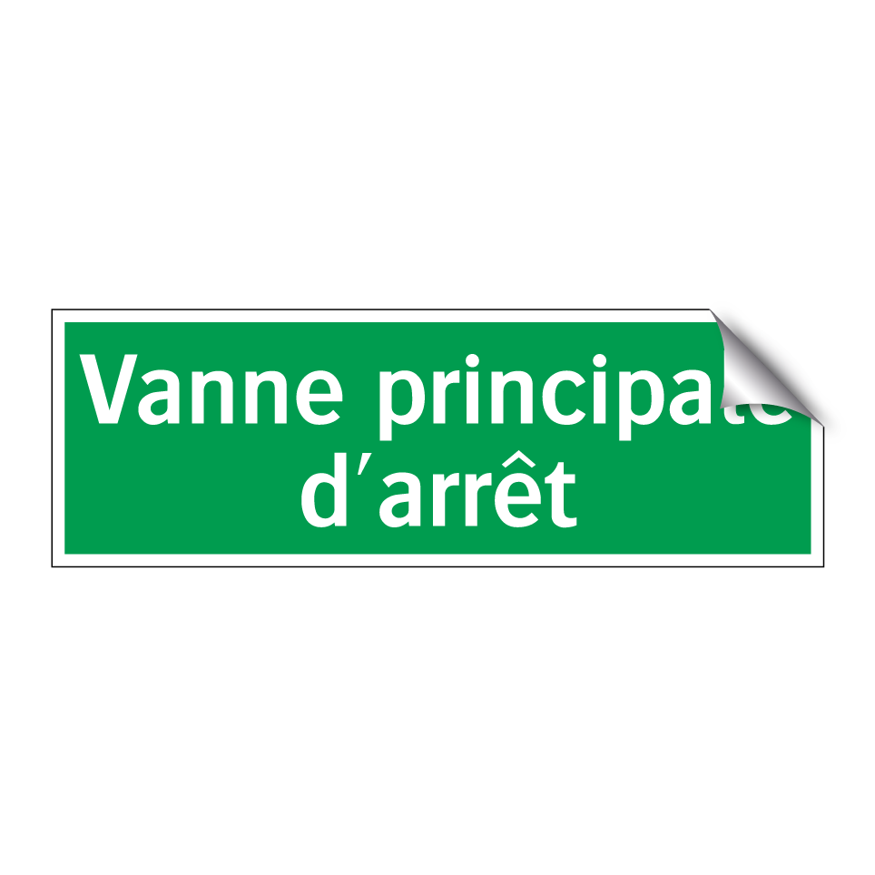 Panneau de secours avec le texte Vanne principale d'arrêt