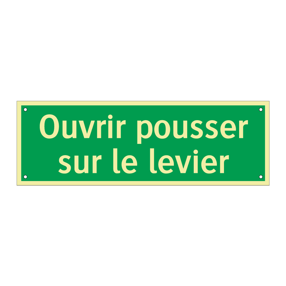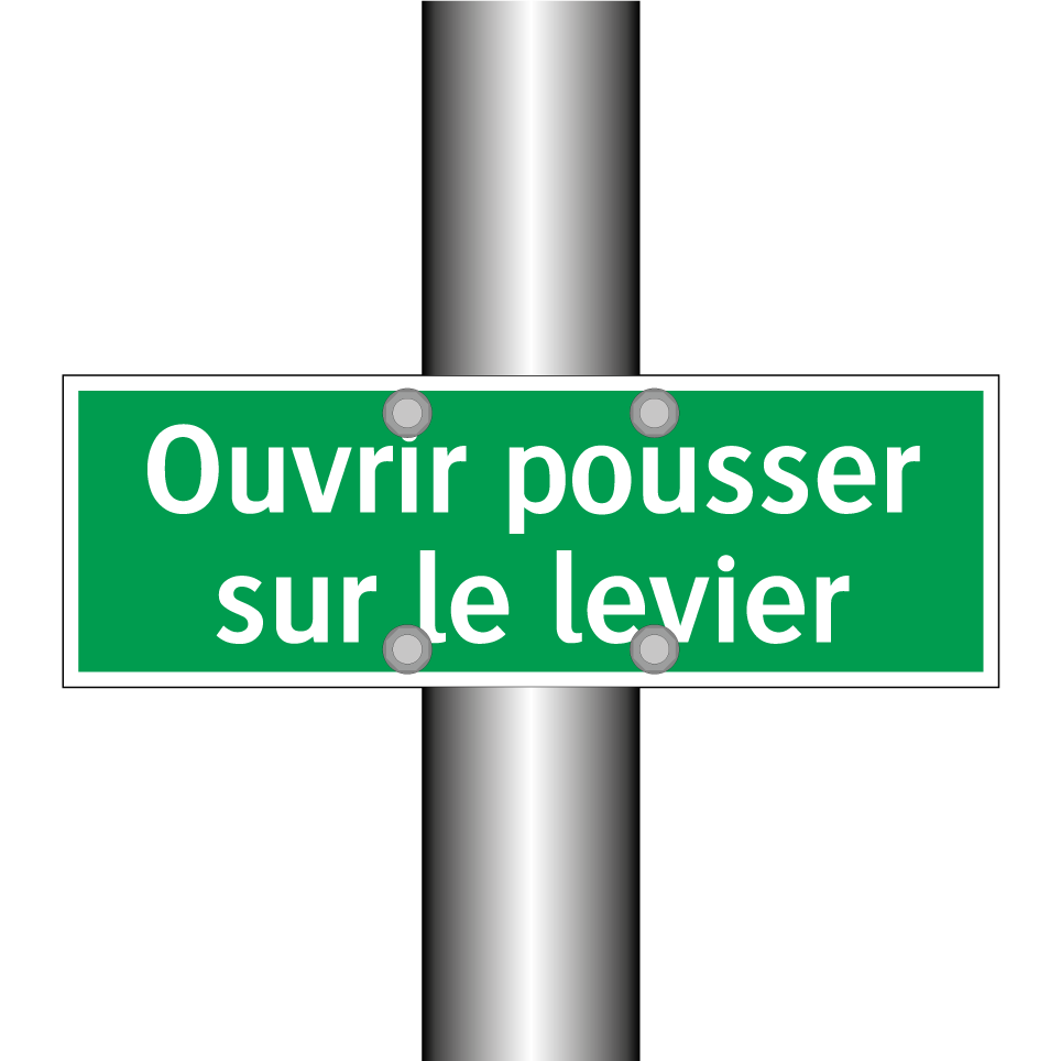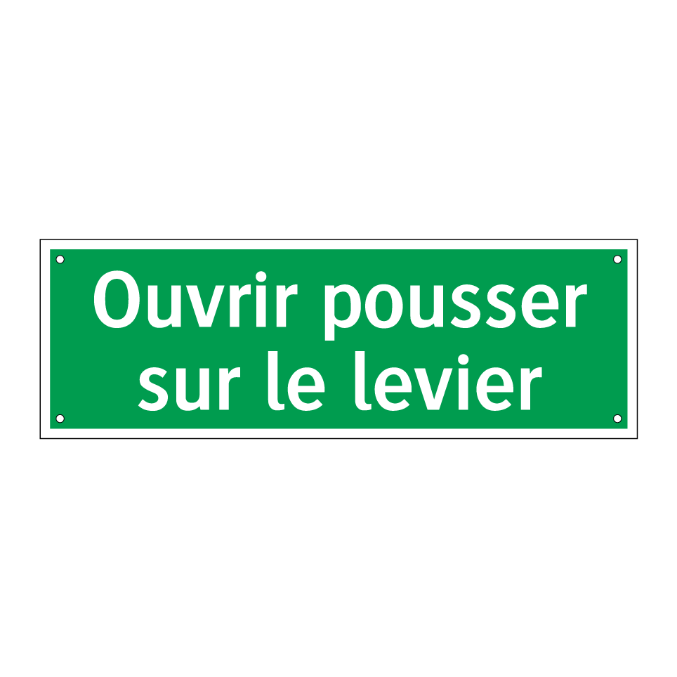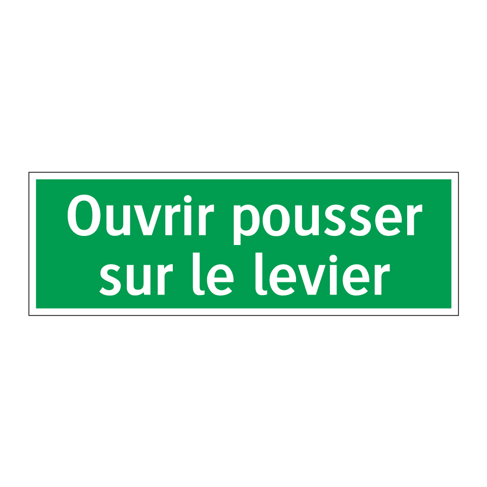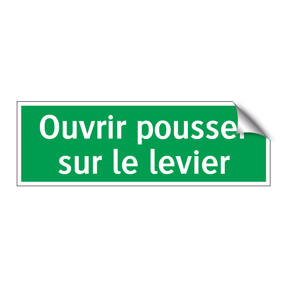 Panneau de secours avec le texte Ouvrir pousser sur le levier