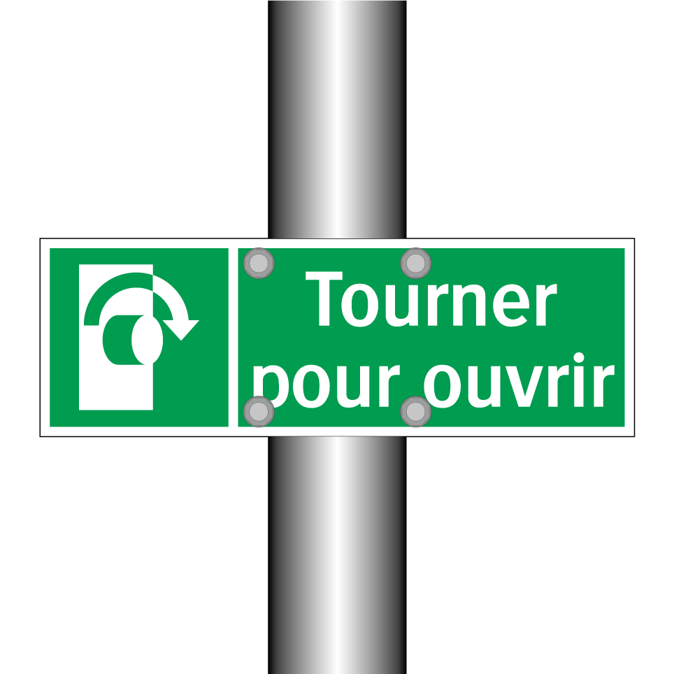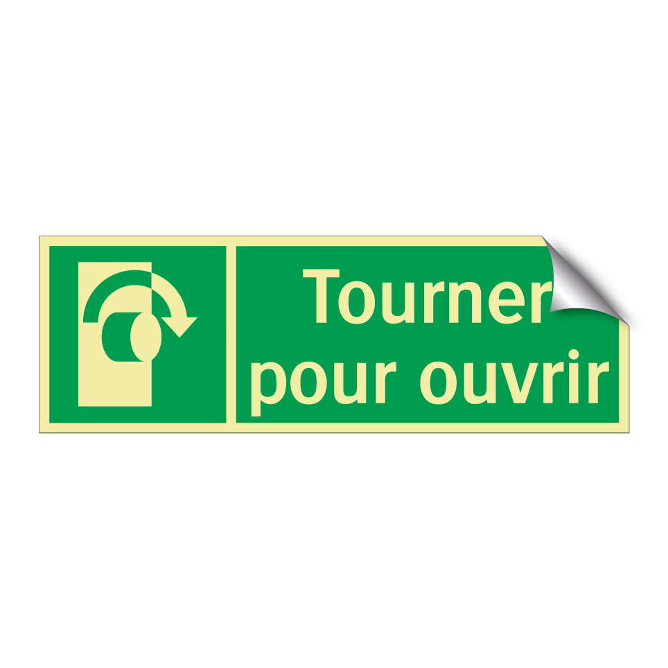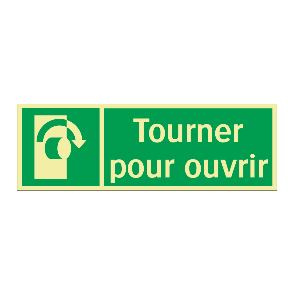 Panneau de secours avec le texte Tourner pour ouvrir et une symbolique claire