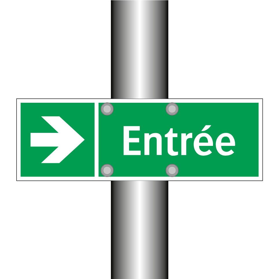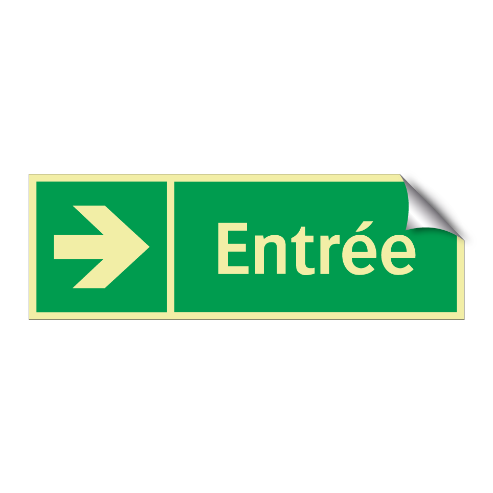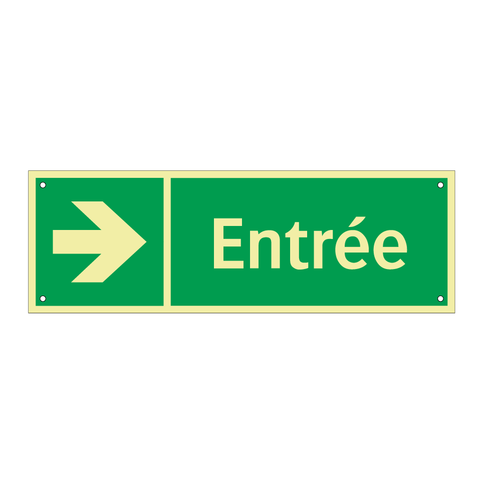 Panneau de secours avec le texte Entrée et une symbolique claire