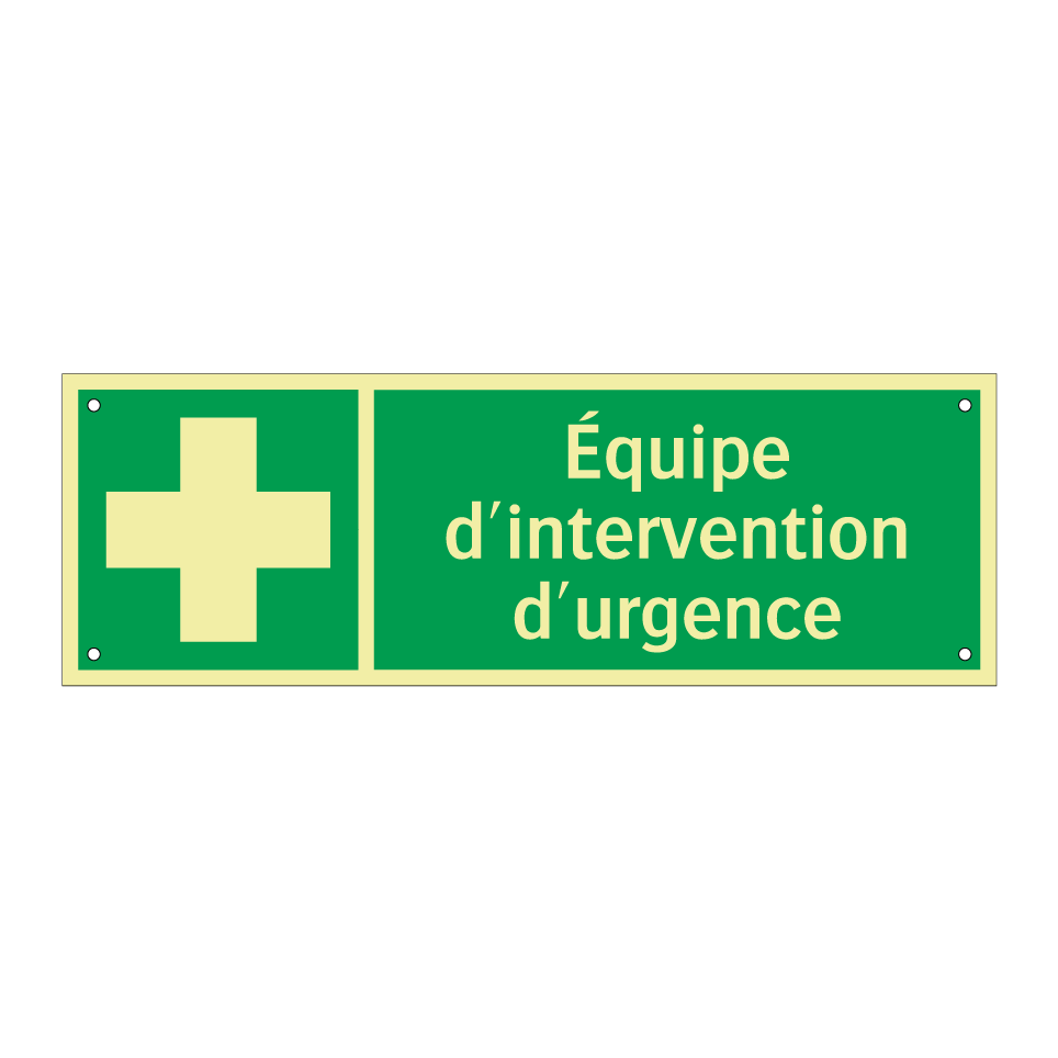 Panneau de secours avec le texte Équipe d'intervention d'urgence et une symbolique claire