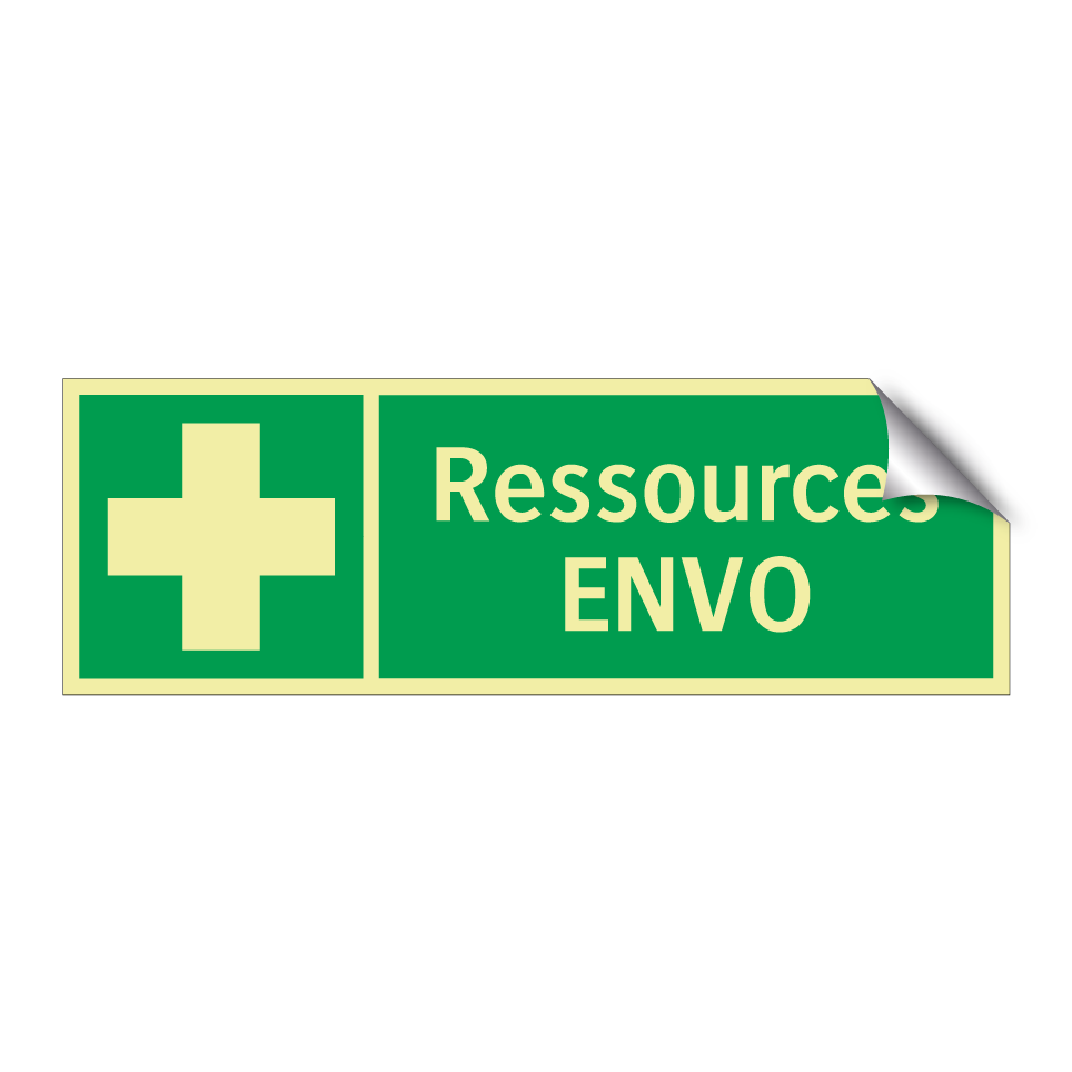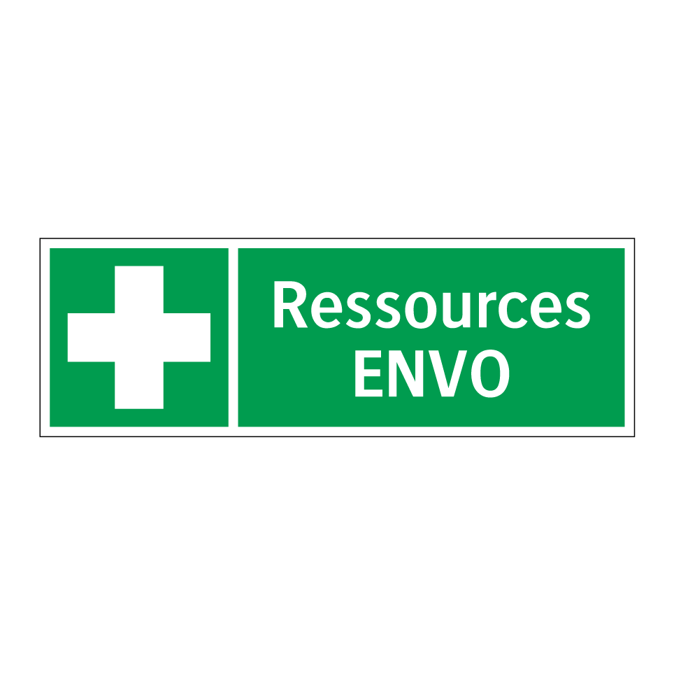 Panneau de secours avec le texte Ressources ENVO et une symbolique claire