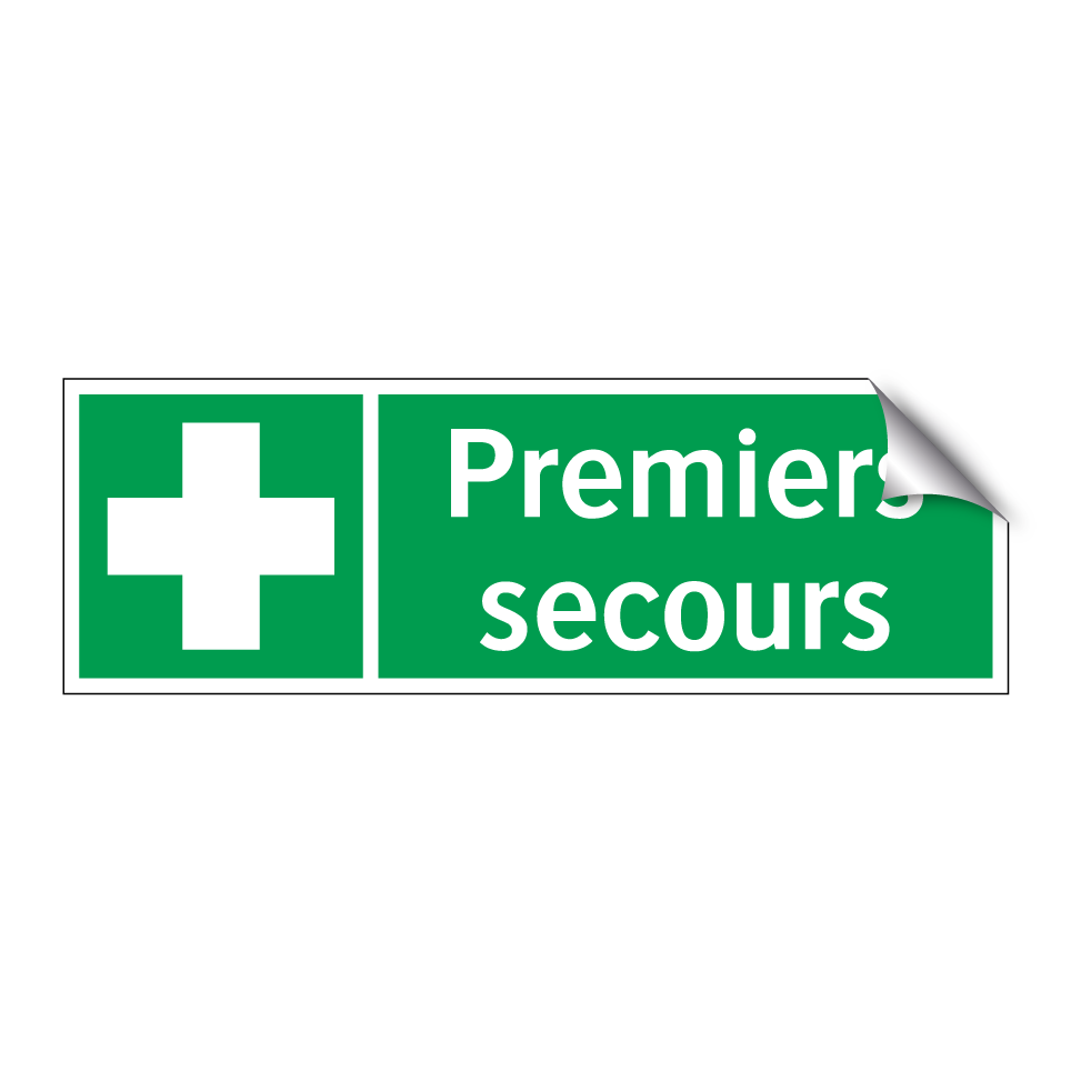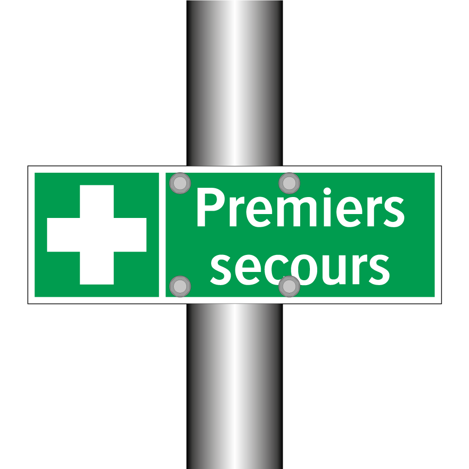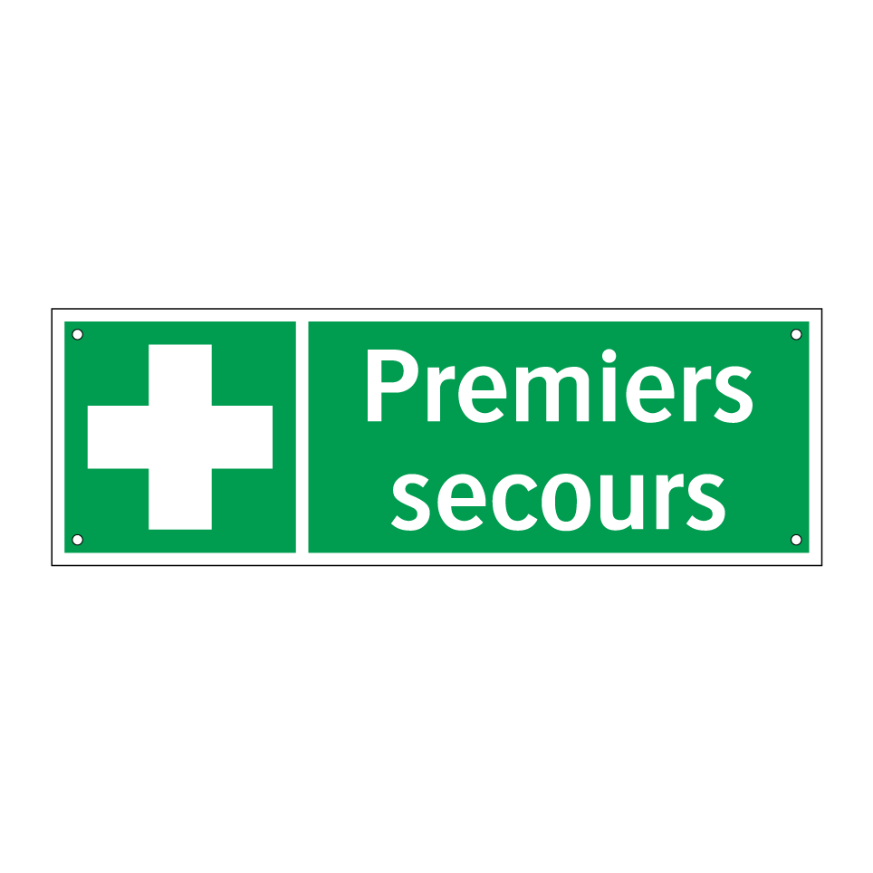 Panneau de secours avec le texte Premiers secours et une symbolique claire