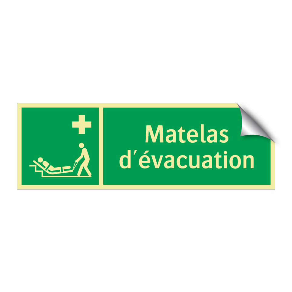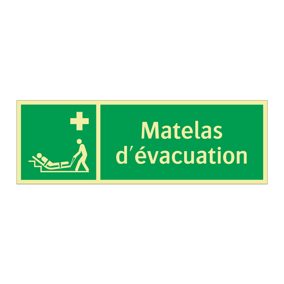 Panneau de secours avec le texte Matelas d'évacuation et une symbolique claire