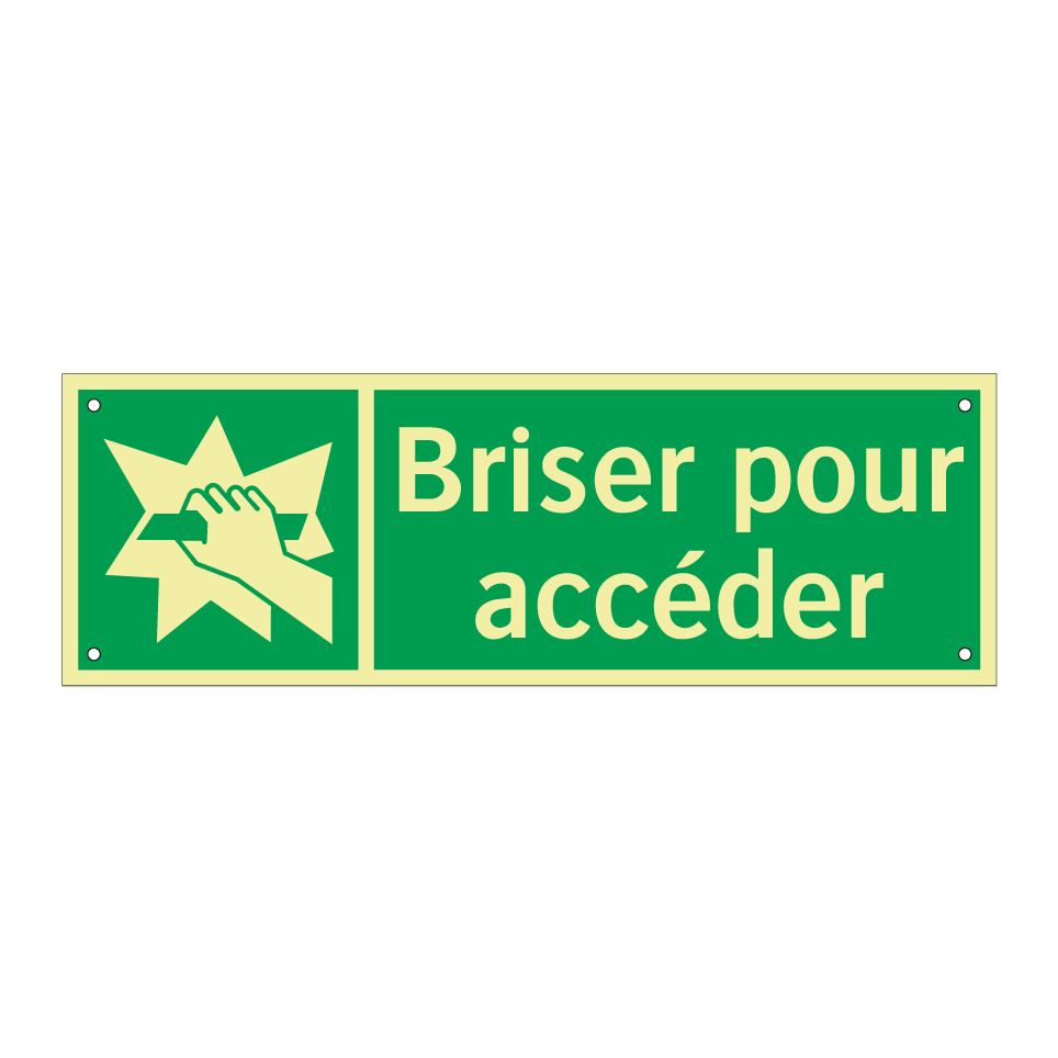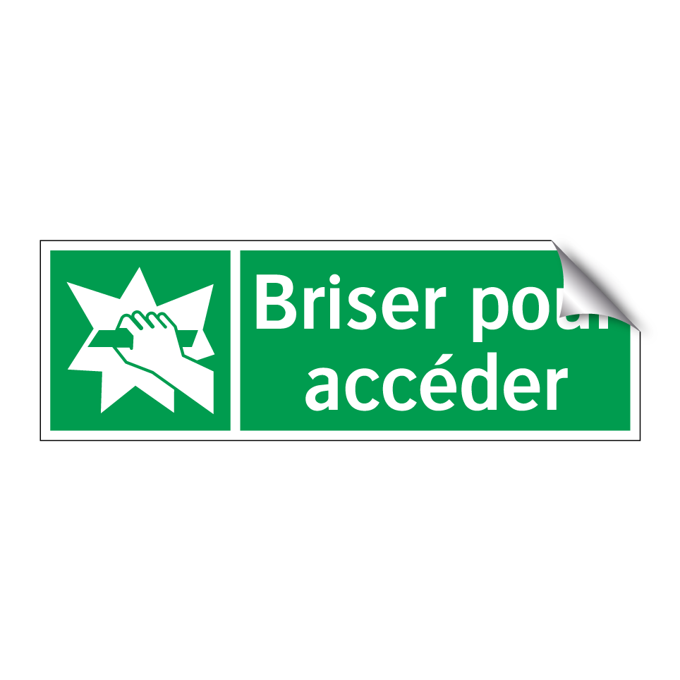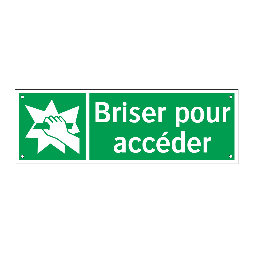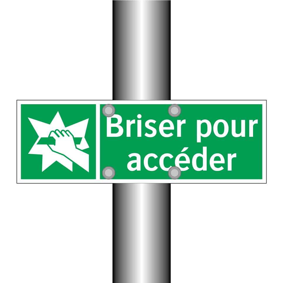 Panneau de secours avec le texte Briser pour accéder et une symbolique claire