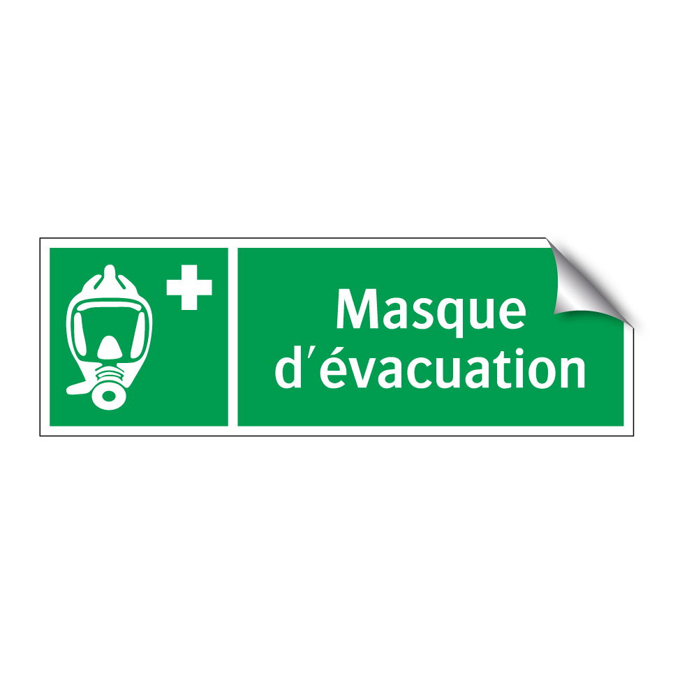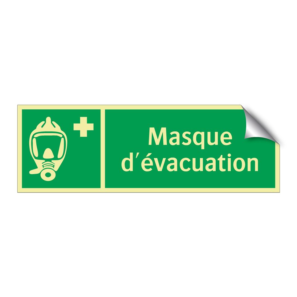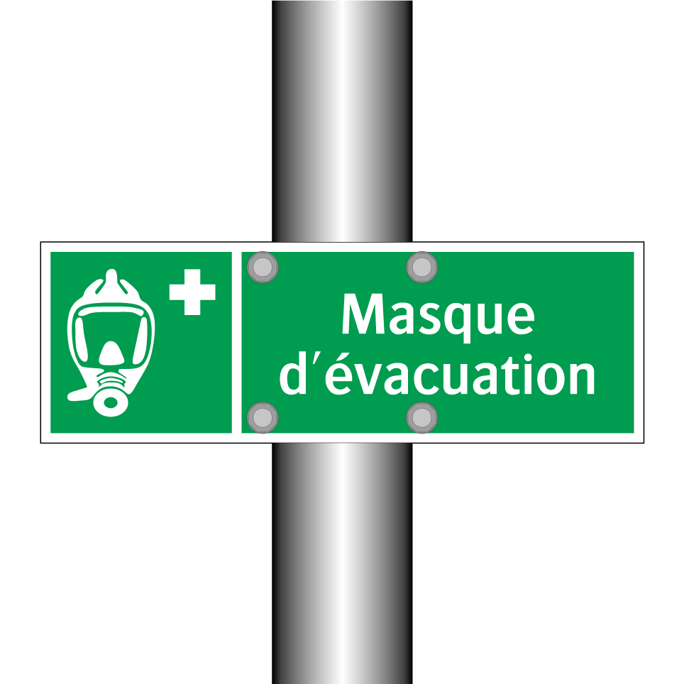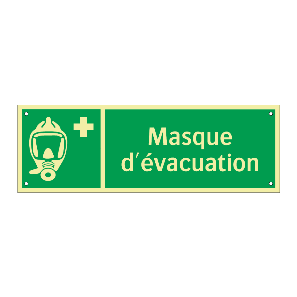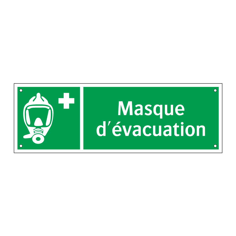 Panneau de secours avec le texte Masque d'évacuation et une symbolique claire