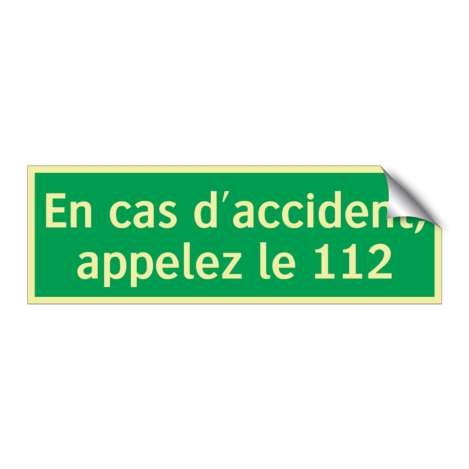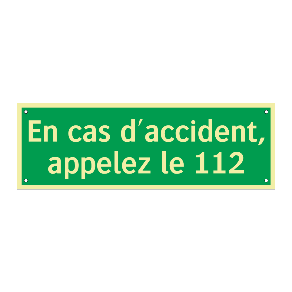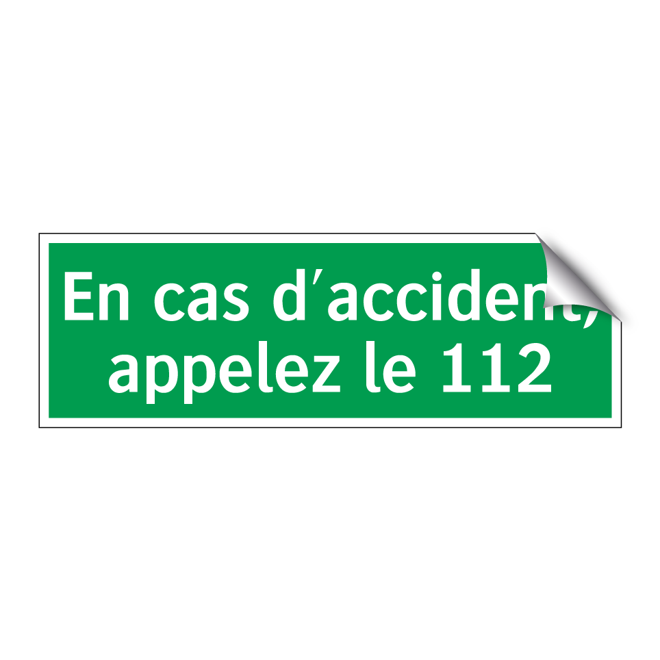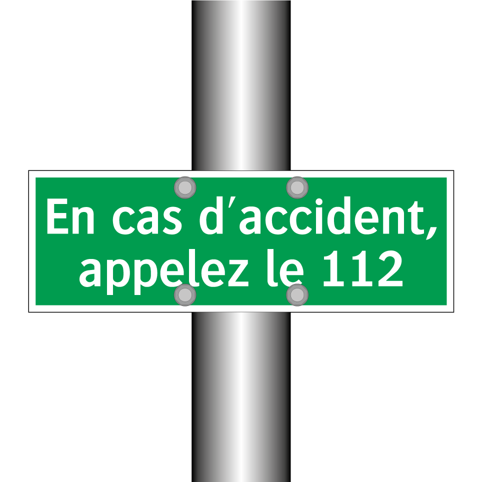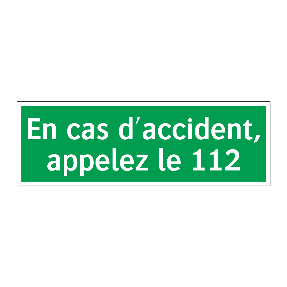 Panneau de secours avec le texte En cas d'accident, appelez le 112