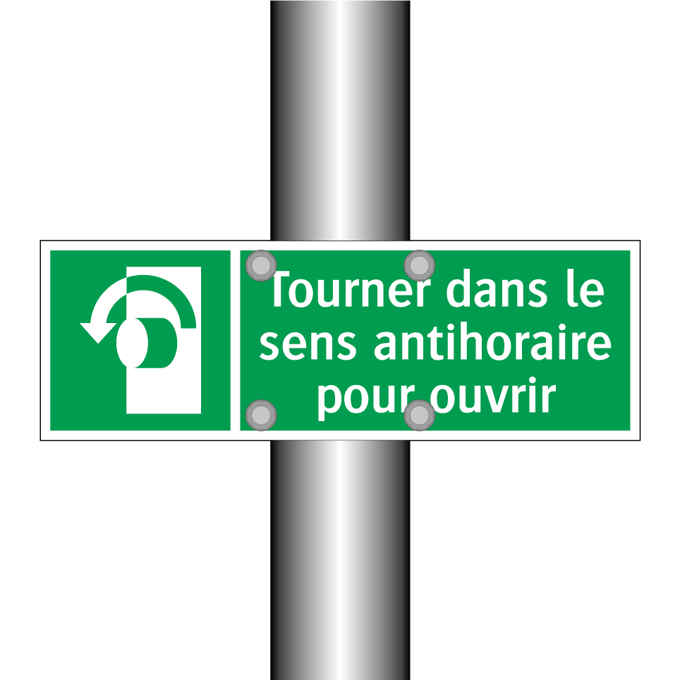 Cette signalisation d'urgence, avec son fond vert et son texte blanc, est idéale pour les environnements où la sécurité est primordiale. Elle est conçue pour être placée à proximité des dispositifs nécessitant une rotation dans le sens inverse des aiguilles d'une montre pour être ouverts, comme les vannes de sécurité ou les portes de secours. Parfaite pour les usines, les entrepôts ou tout autre lieu industriel, elle assure une compréhension rapide grâce à son symbole clair et son message en français. Installez-la dans des zones bien visibles pour garantir une évacuation efficace et sécurisée en cas d'urgence.