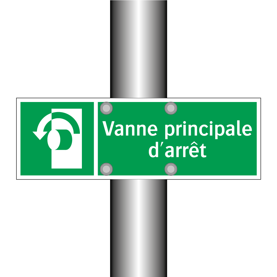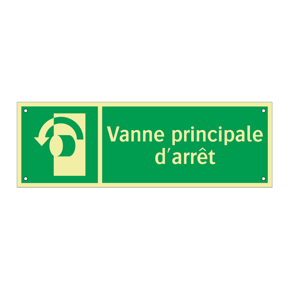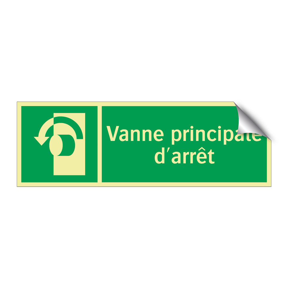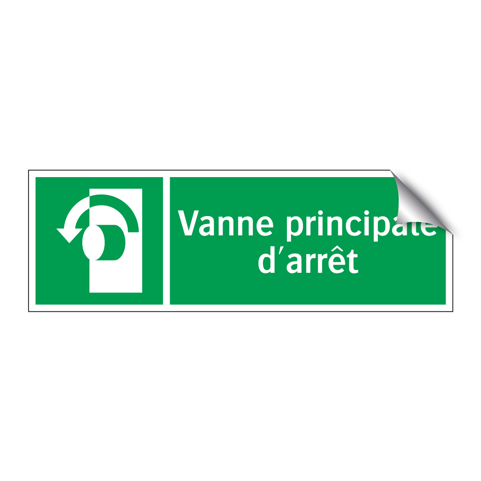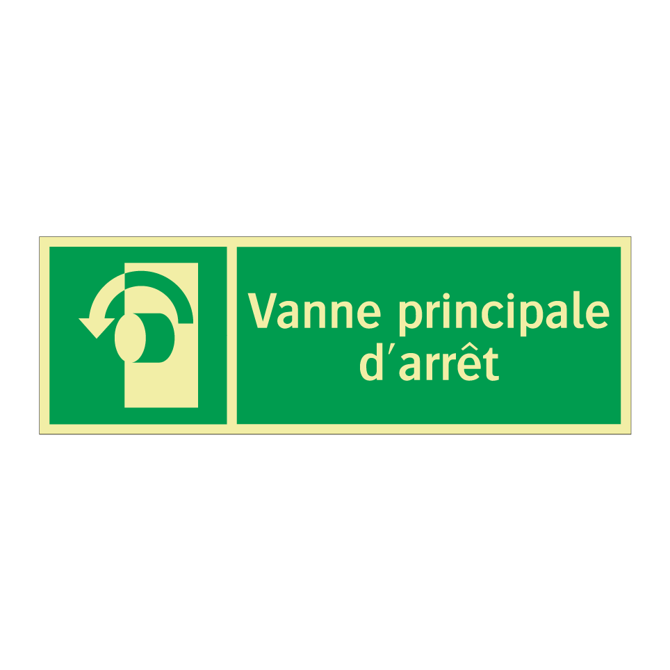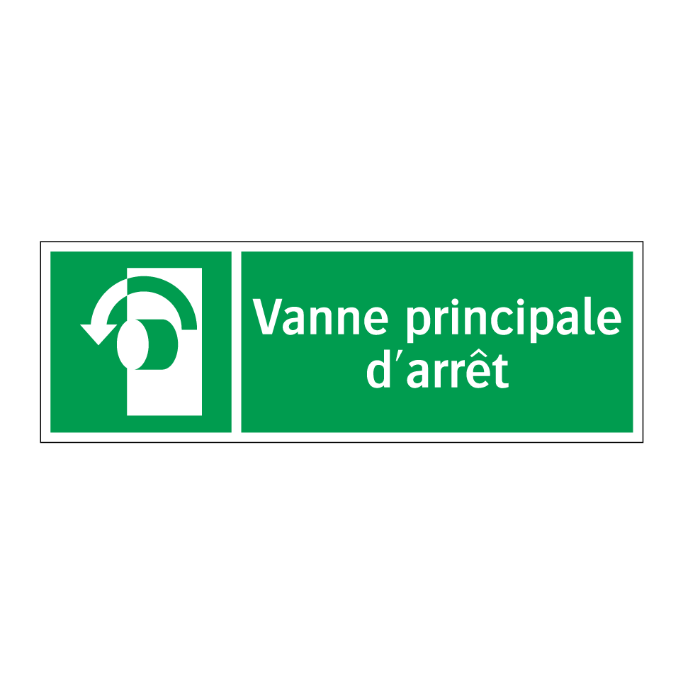 Panneau de secours avec le texte Vanne principale d'arrêt et une symbolique claire