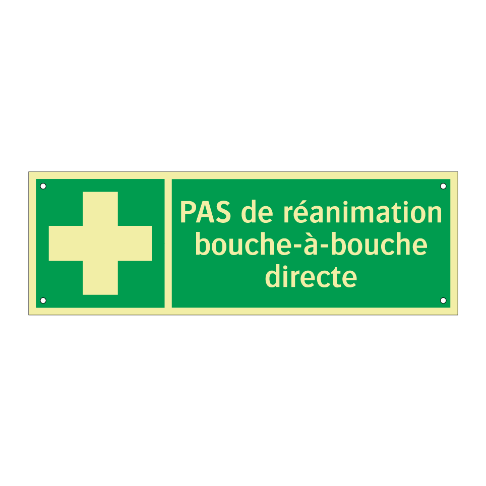Panneau de secours avec le texte PAS de réanimation bouche-à-bouche directe et une symbolique claire