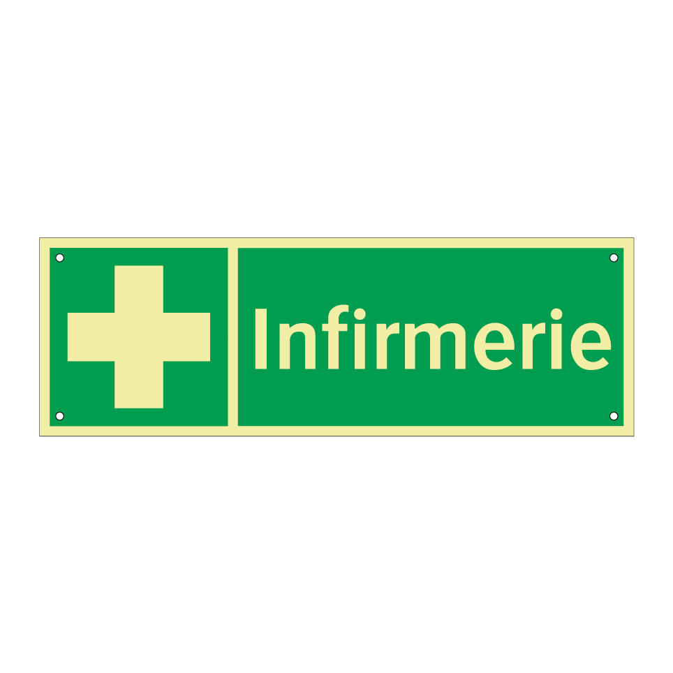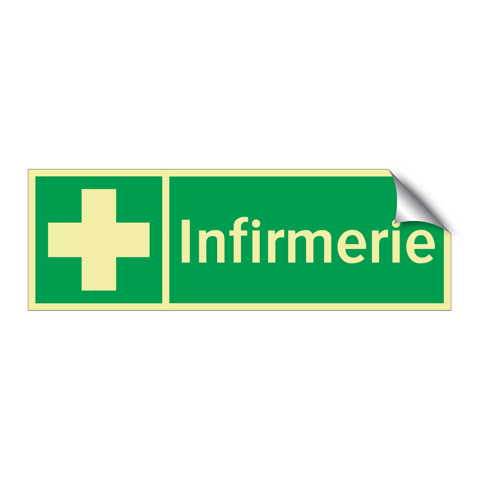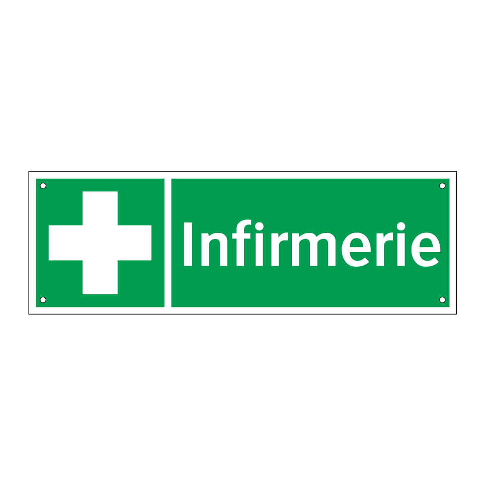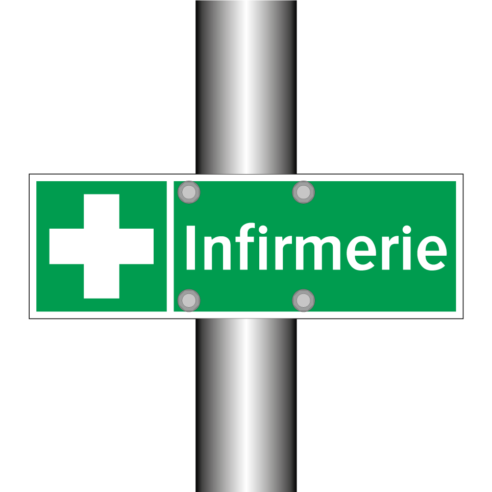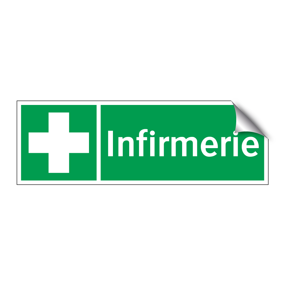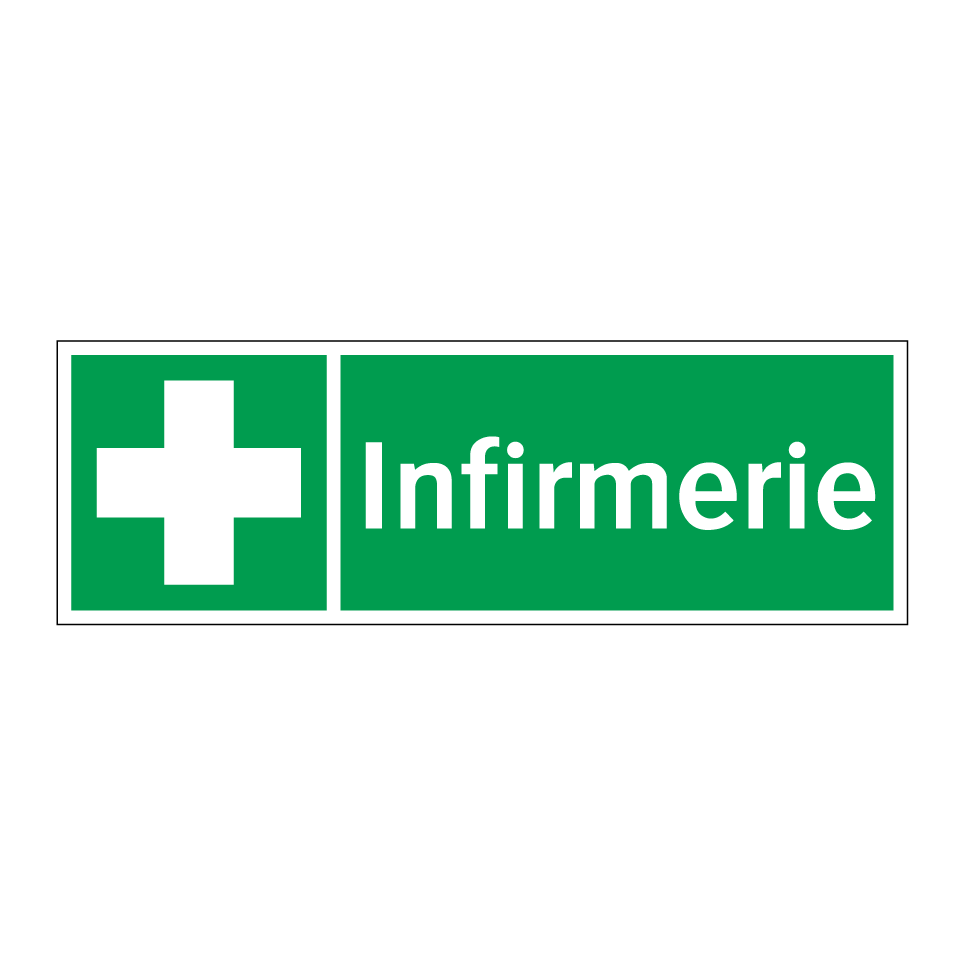 Panneau de secours avec le texte Infirmerie et une symbolique claire