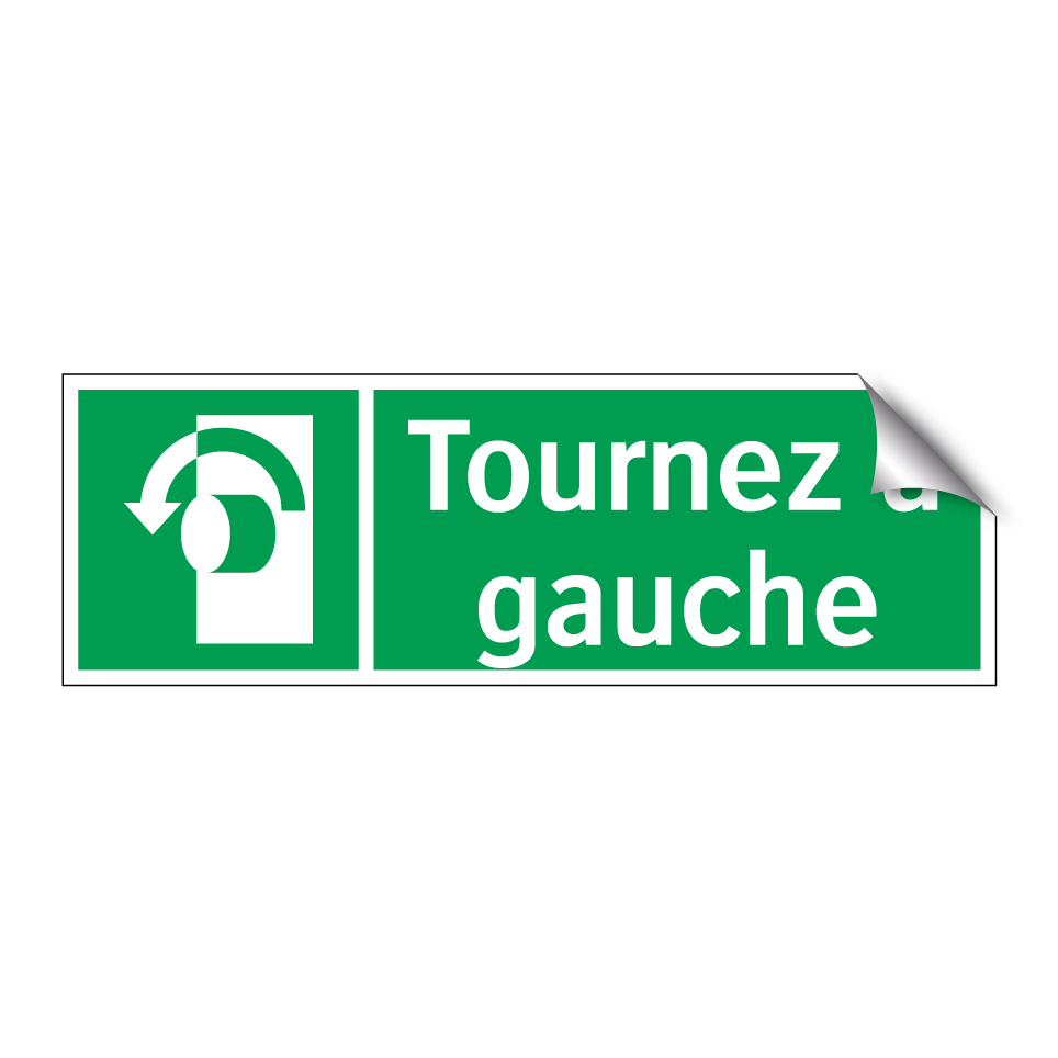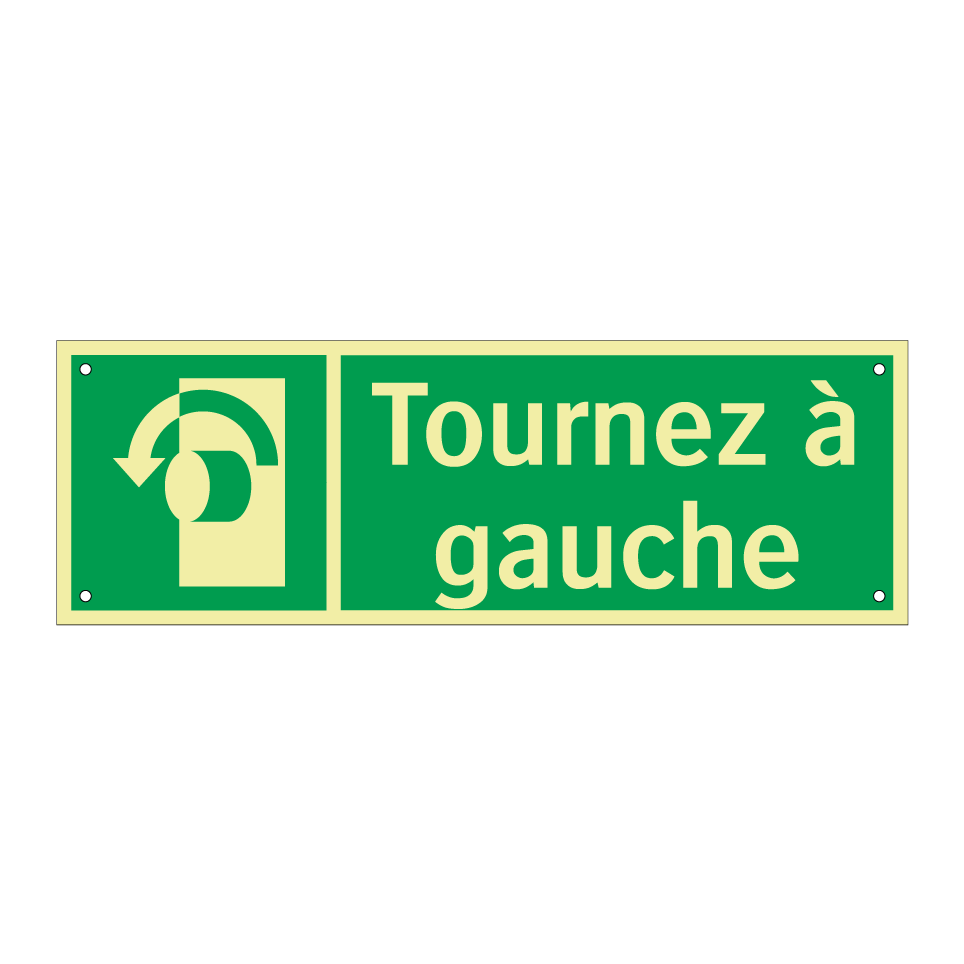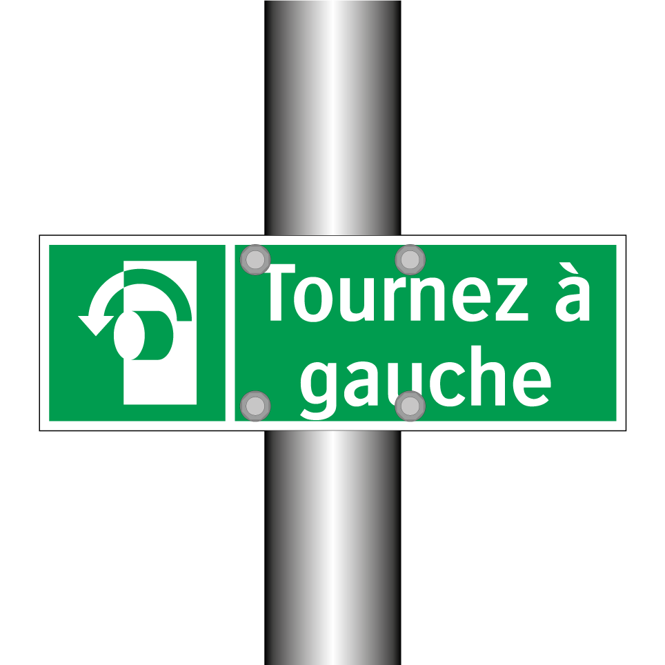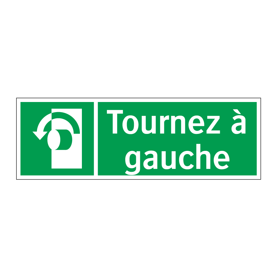 Panneau de secours avec le texte Tournez à gauche et une symbolique claire