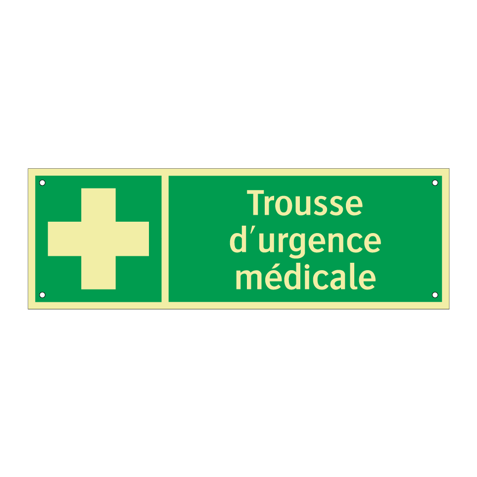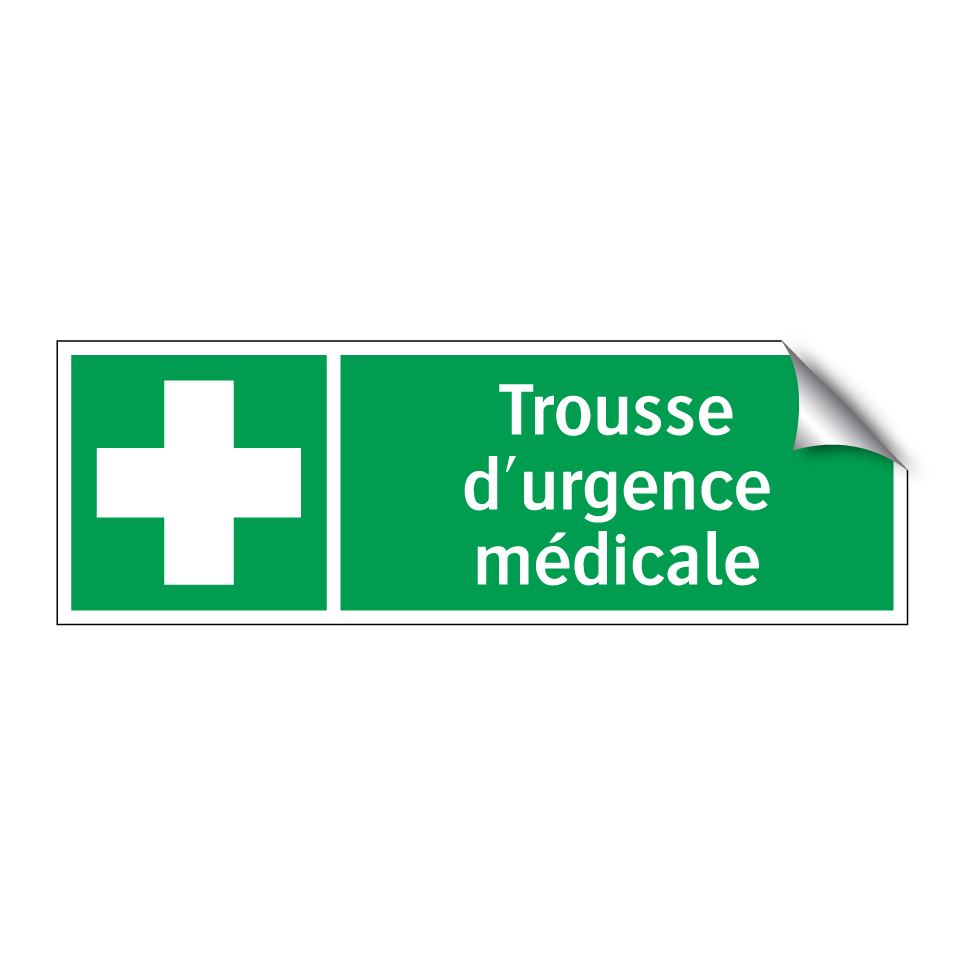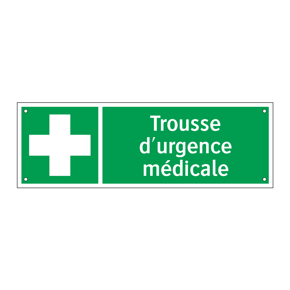 Panneau de secours avec le texte Trousse d'urgence médicale et une symbolique claire