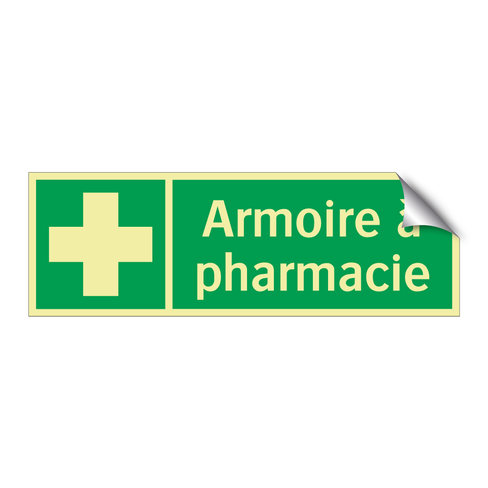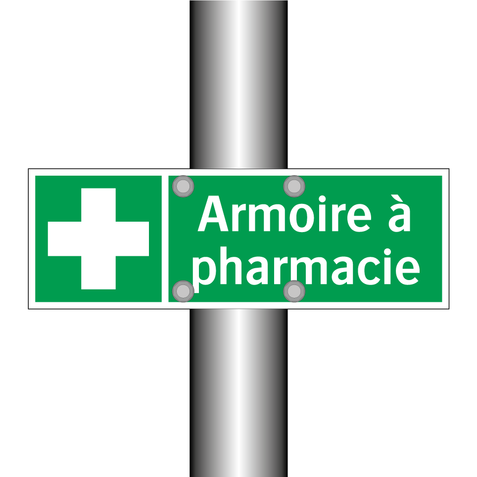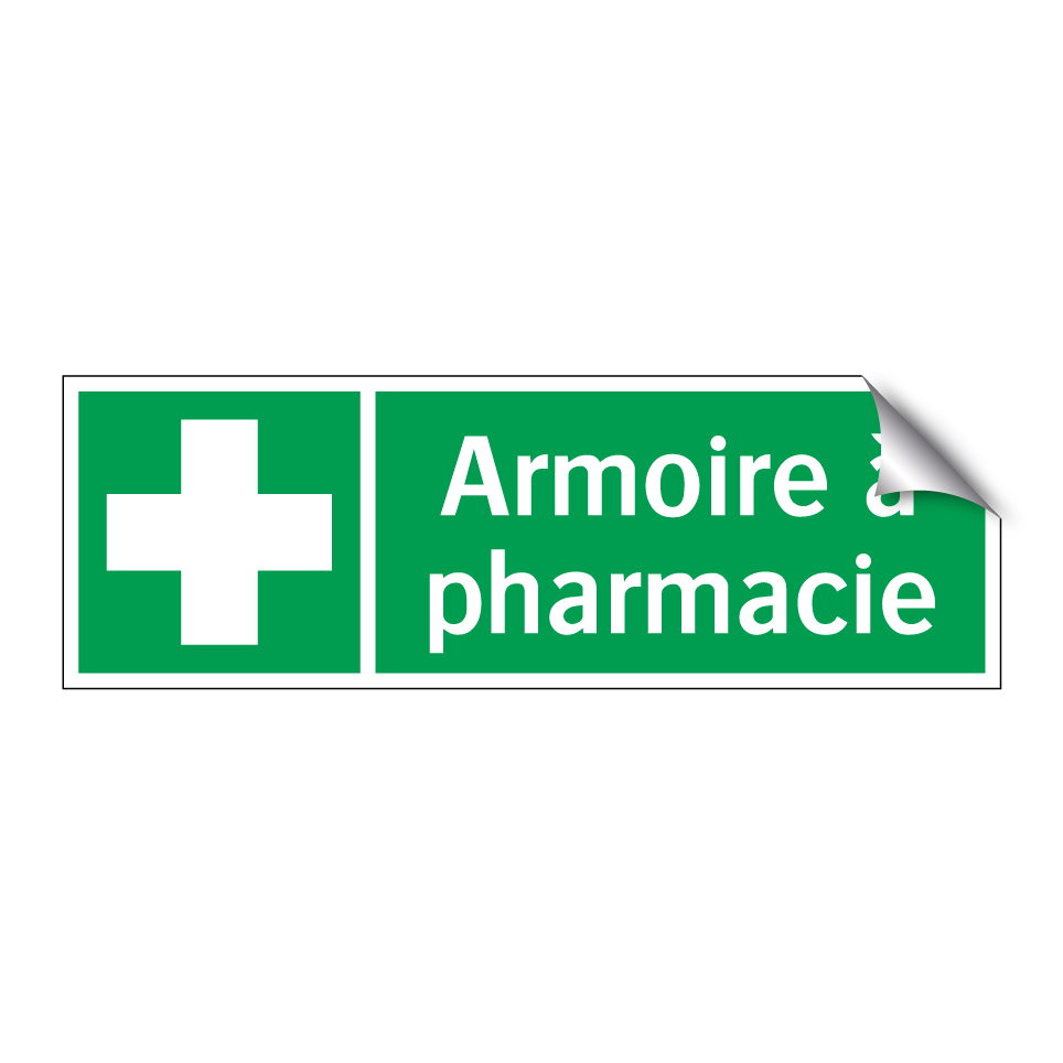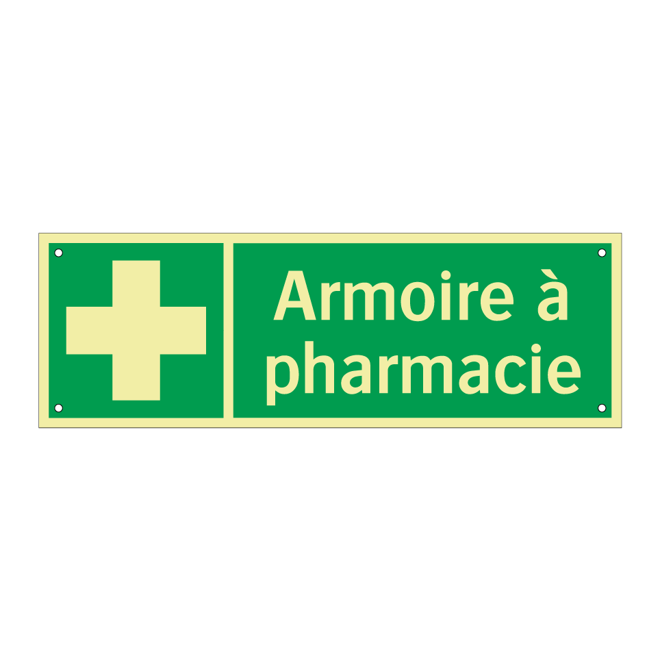 Panneau de secours avec le texte Armoire à pharmacie et une symbolique claire
