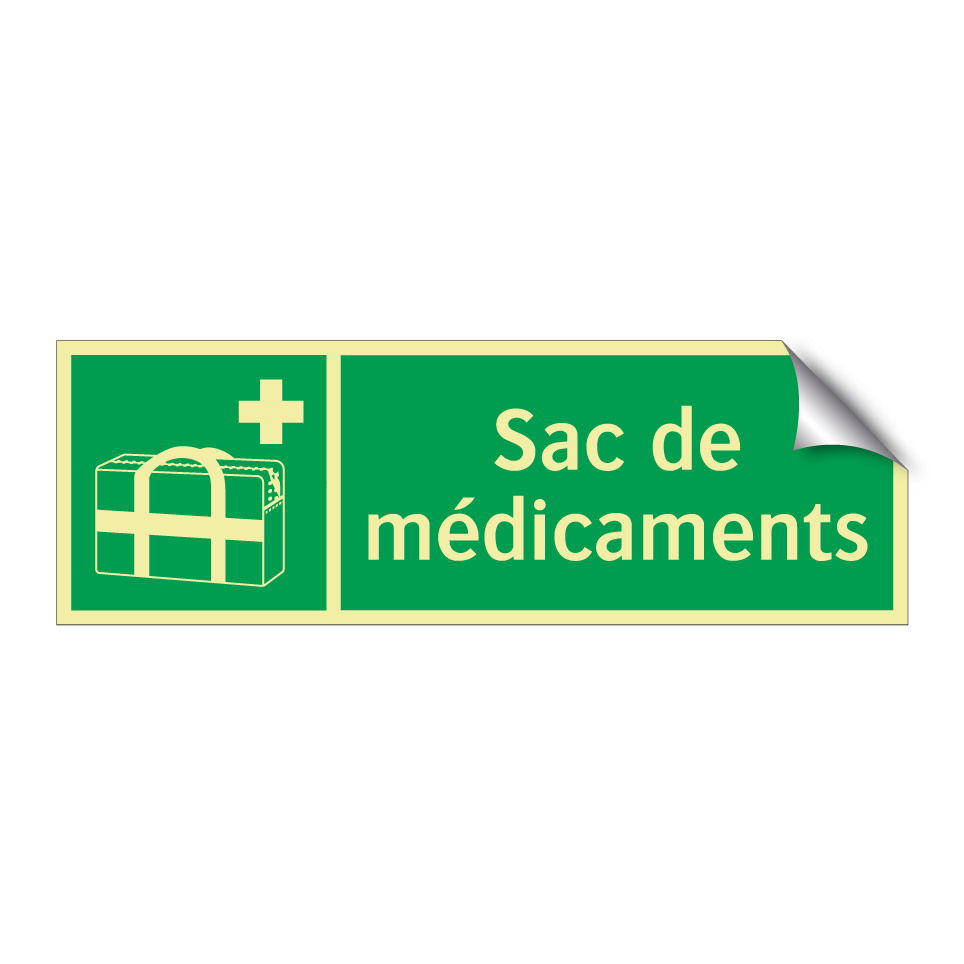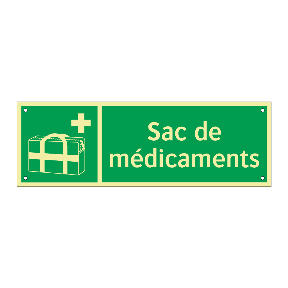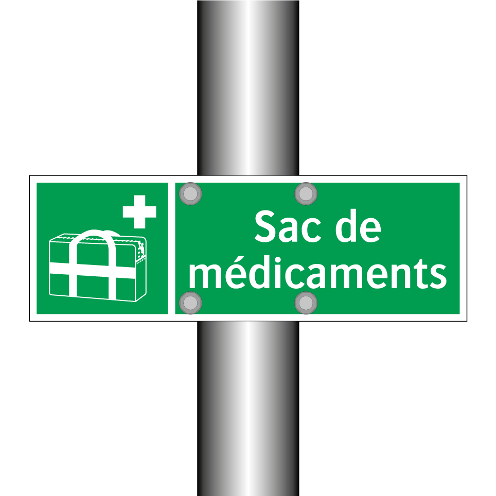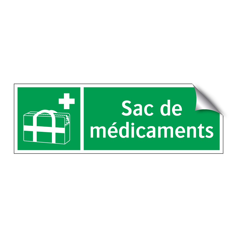 Panneau de secours avec le texte Sac de médicaments et une symbolique claire