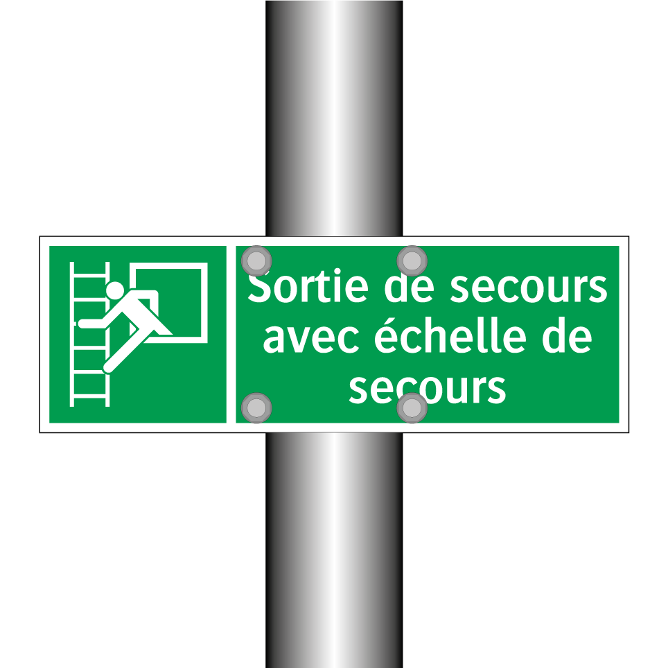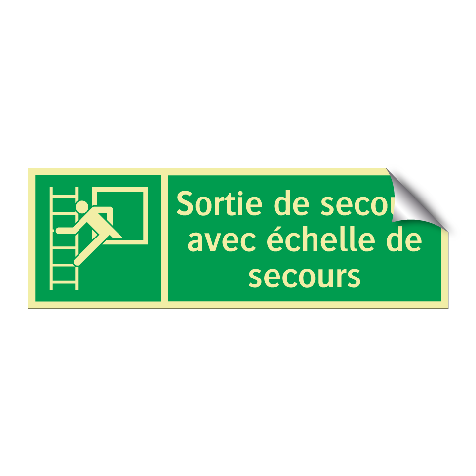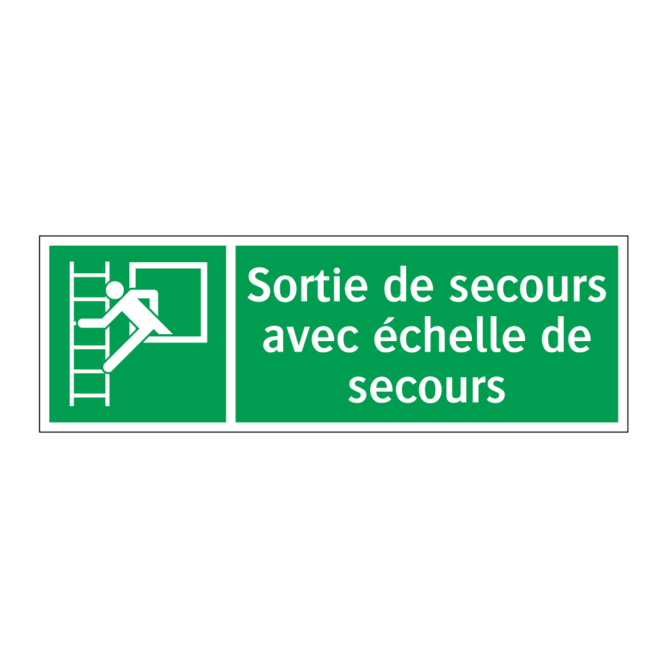 Panneau de secours avec le texte Sortie de secours avec échelle de secours et une symbolique claire