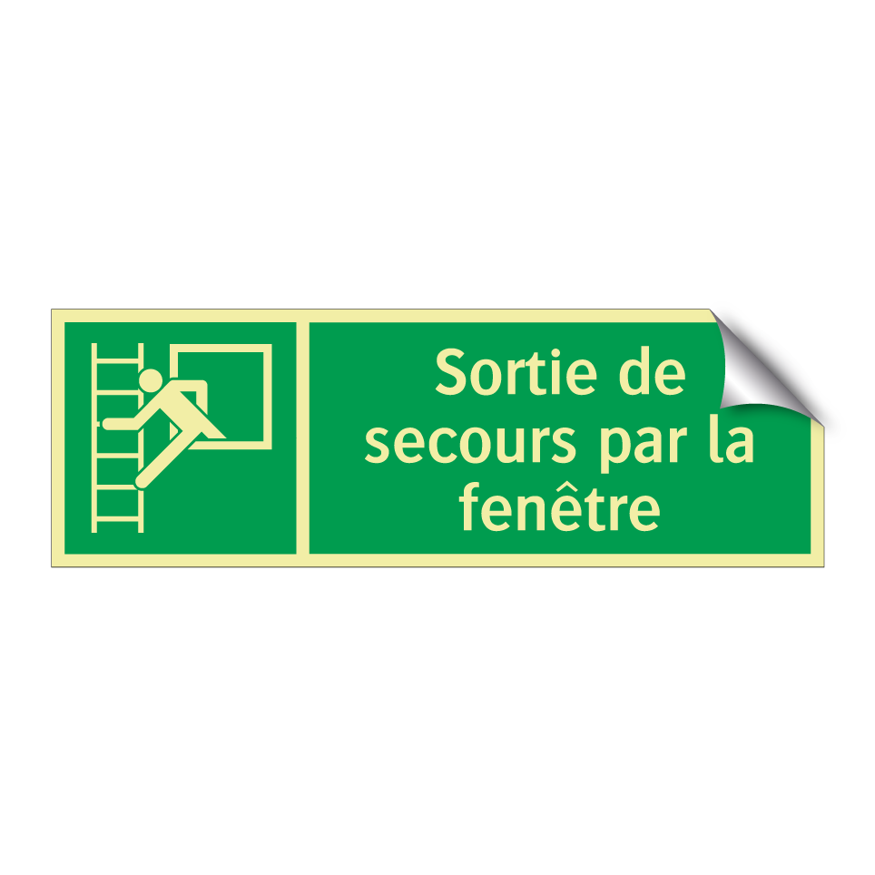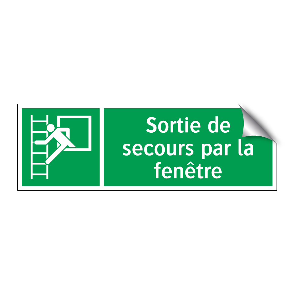 Panneau de secours avec le texte Sortie de secours par la fenêtre et une symbolique claire
