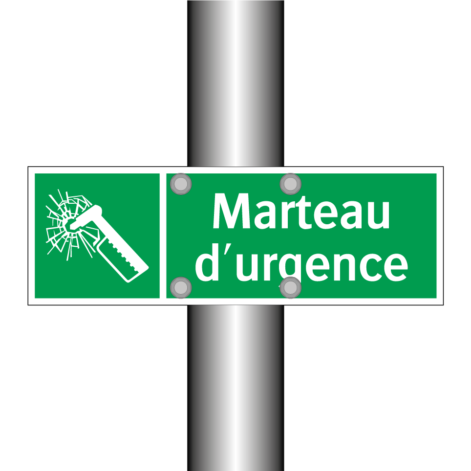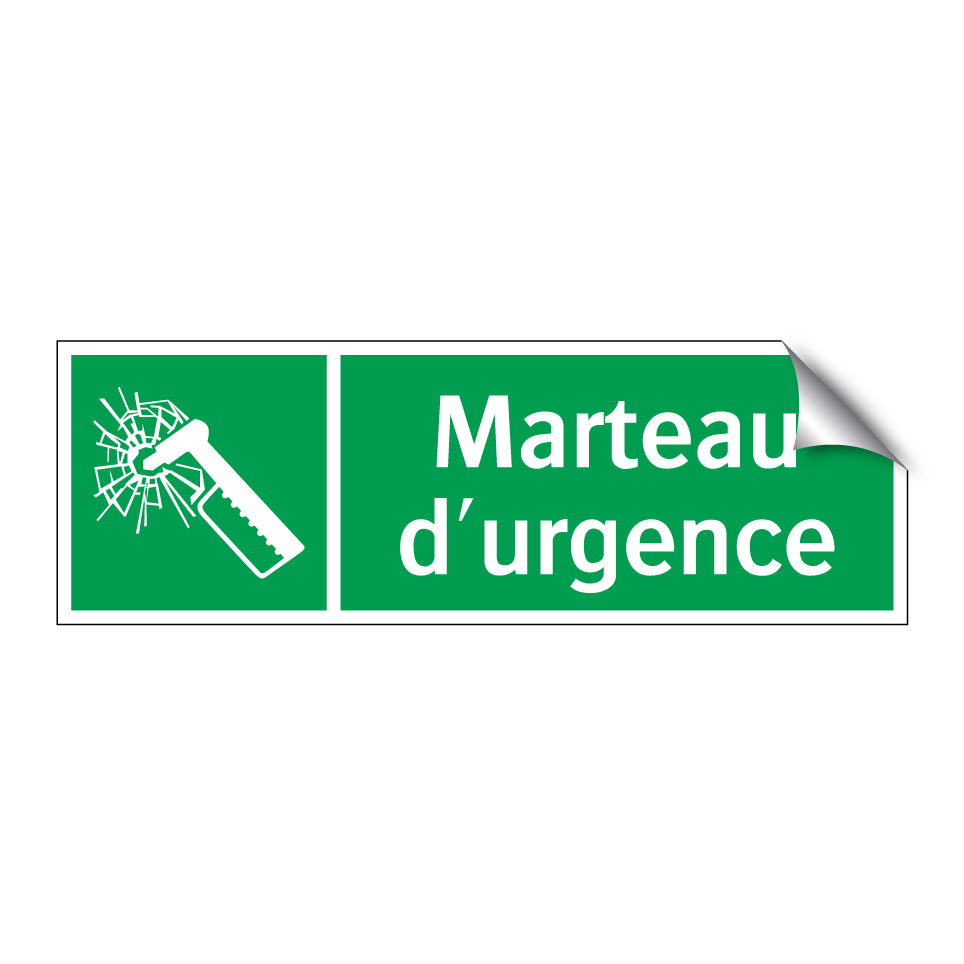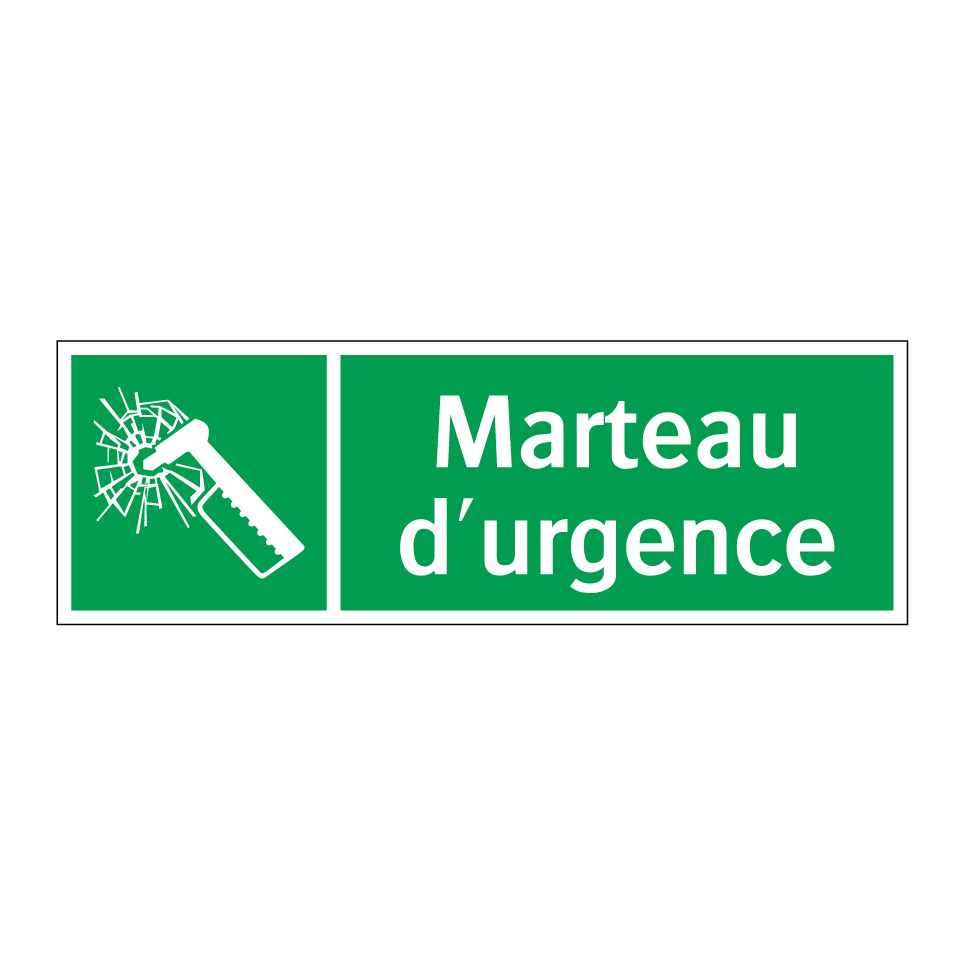 Panneau de secours avec le texte Marteau d'urgence et une symbolique claire