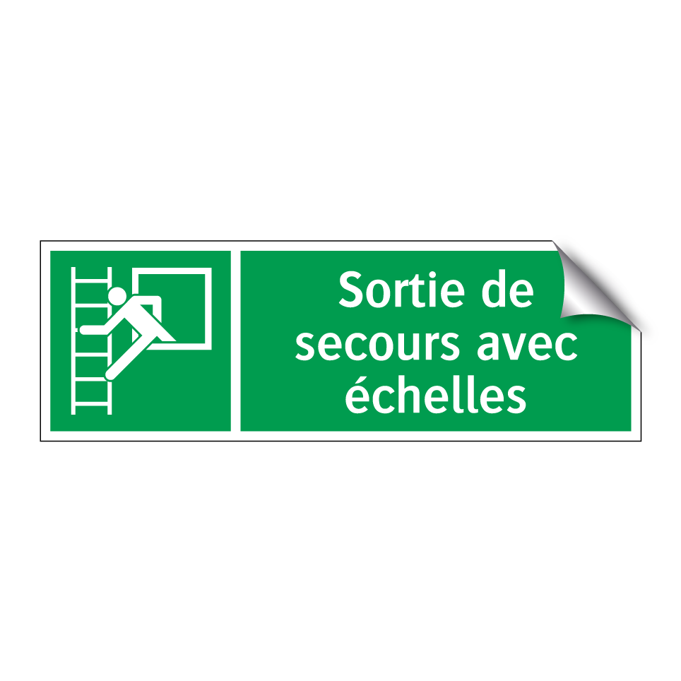 Panneau de secours avec le texte Sortie de secours avec échelles et une symbolique claire