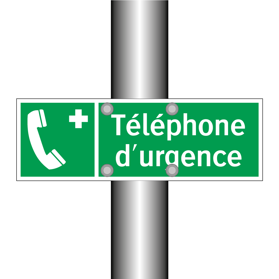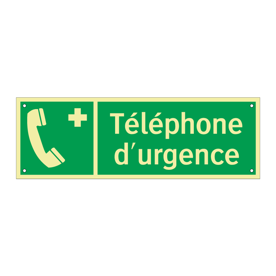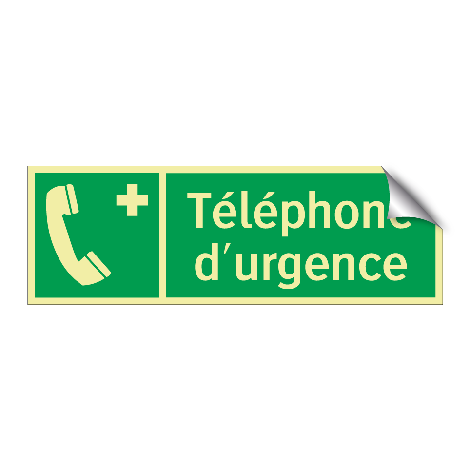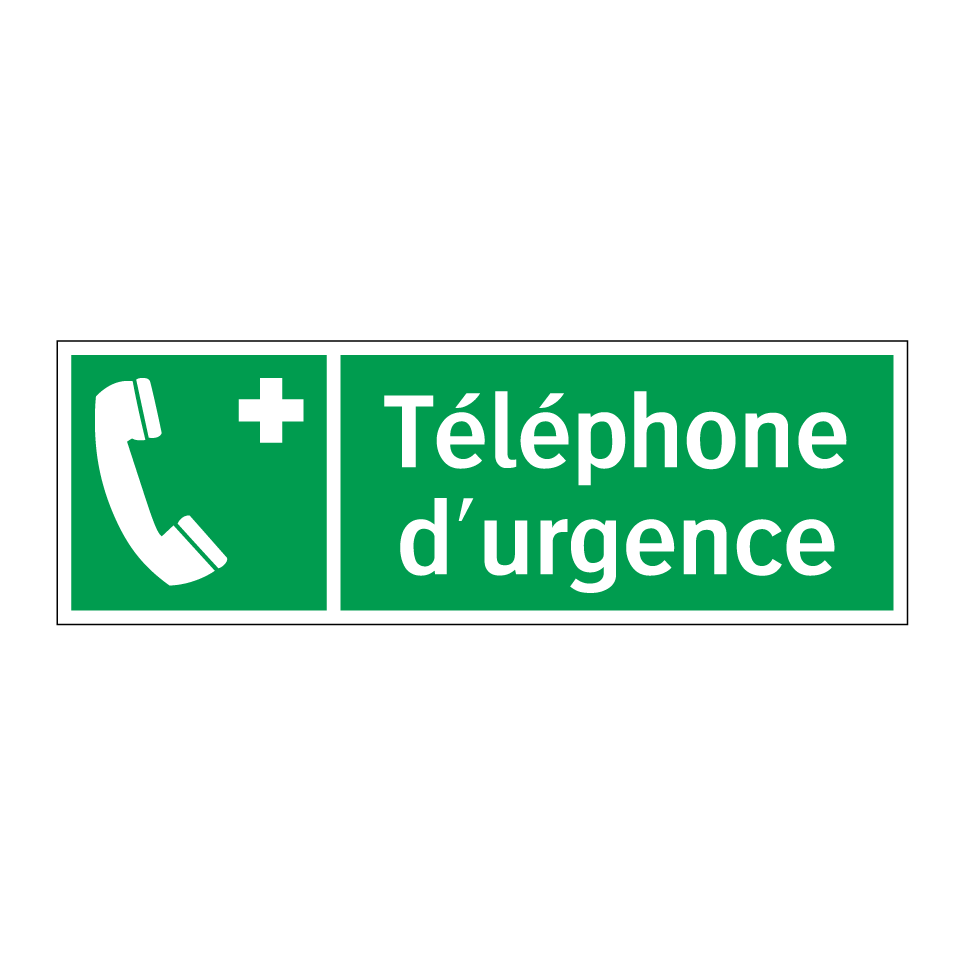 Panneau de secours avec le texte Téléphone d'urgence et une symbolique claire