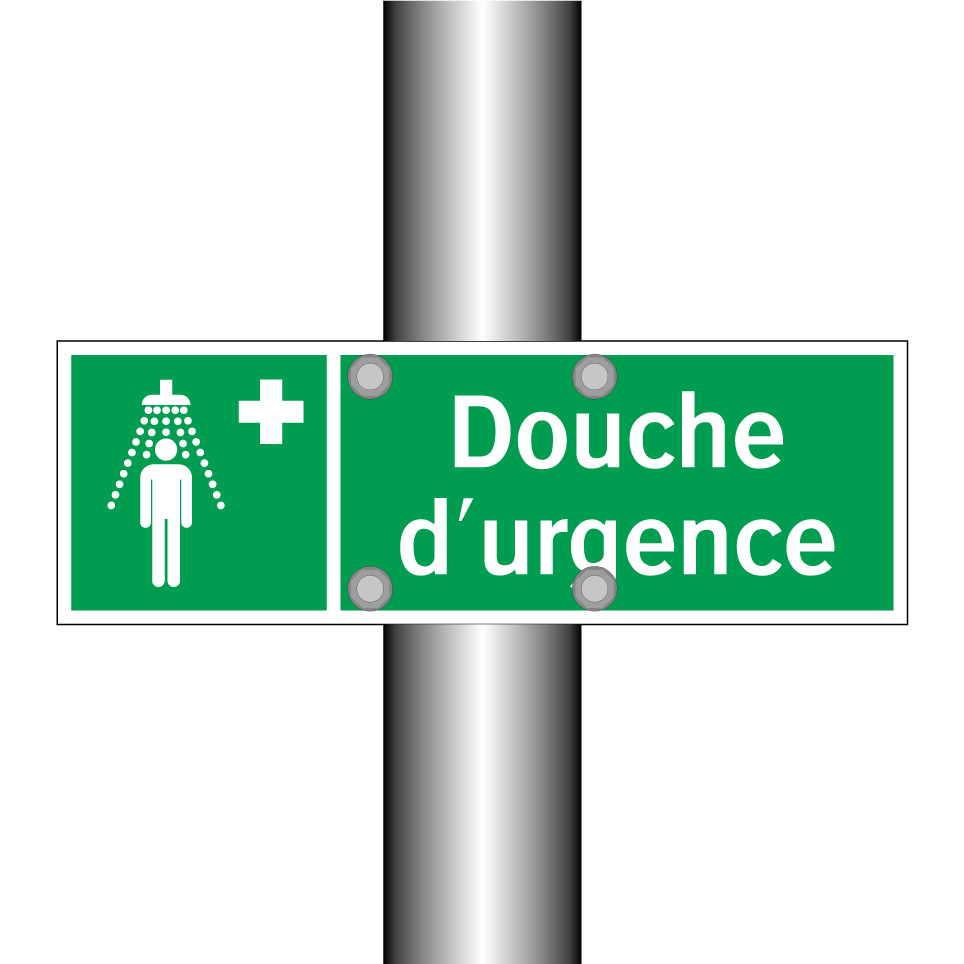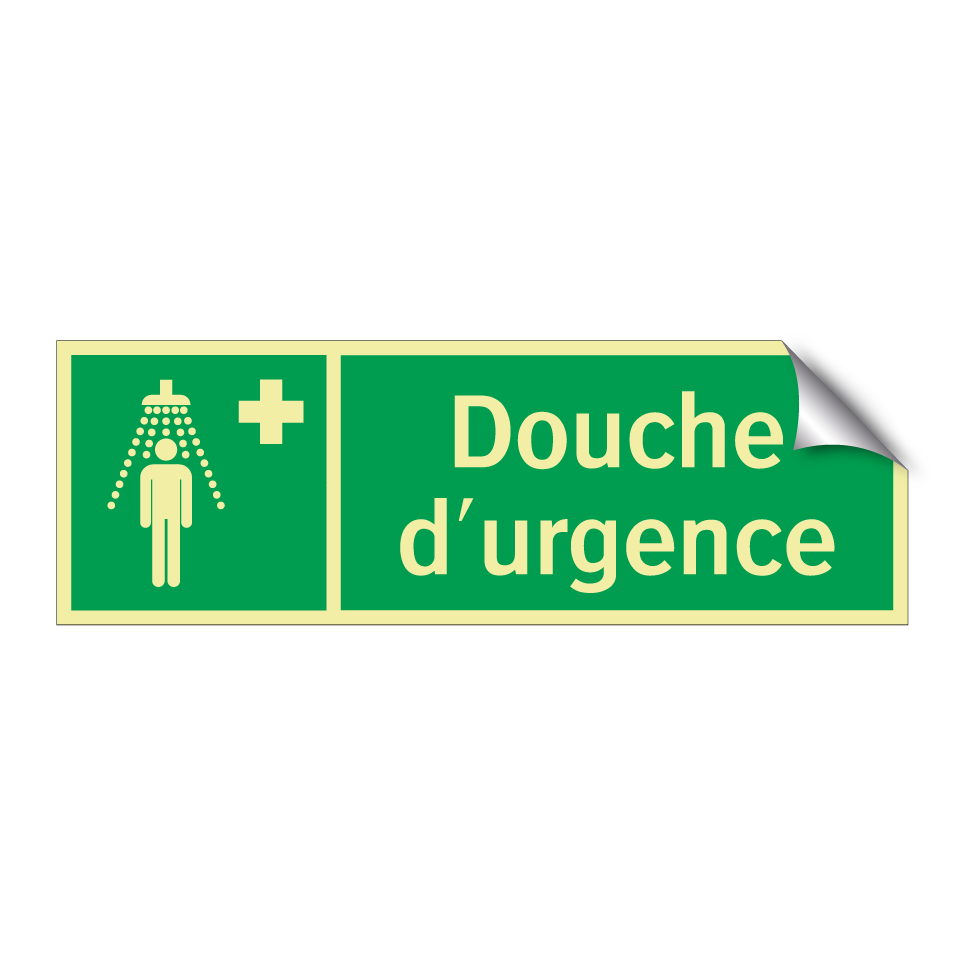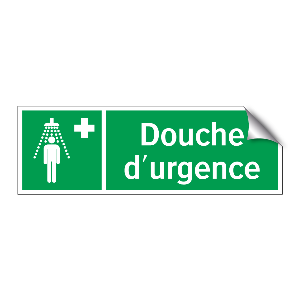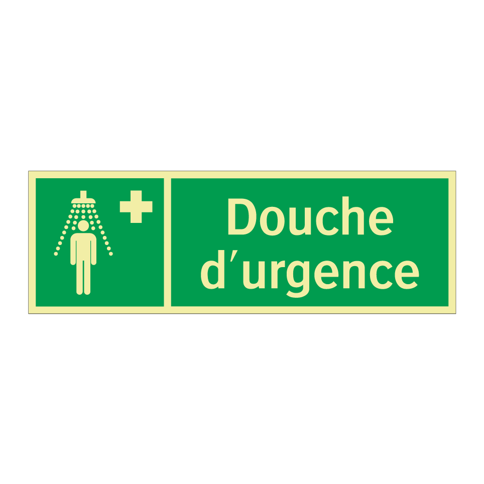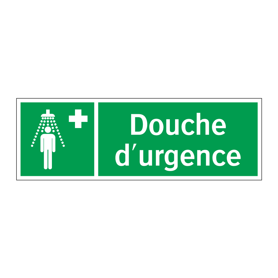 Panneau de secours avec le texte Douche d'urgence et une symbolique claire