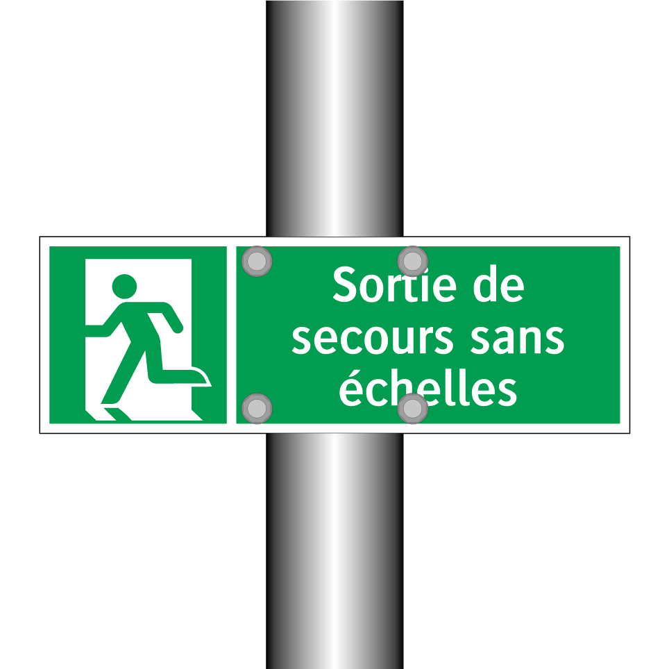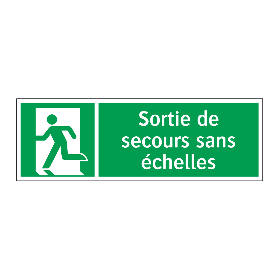 Panneau de secours avec le texte Sortie de secours sans échelles et une symbolique claire