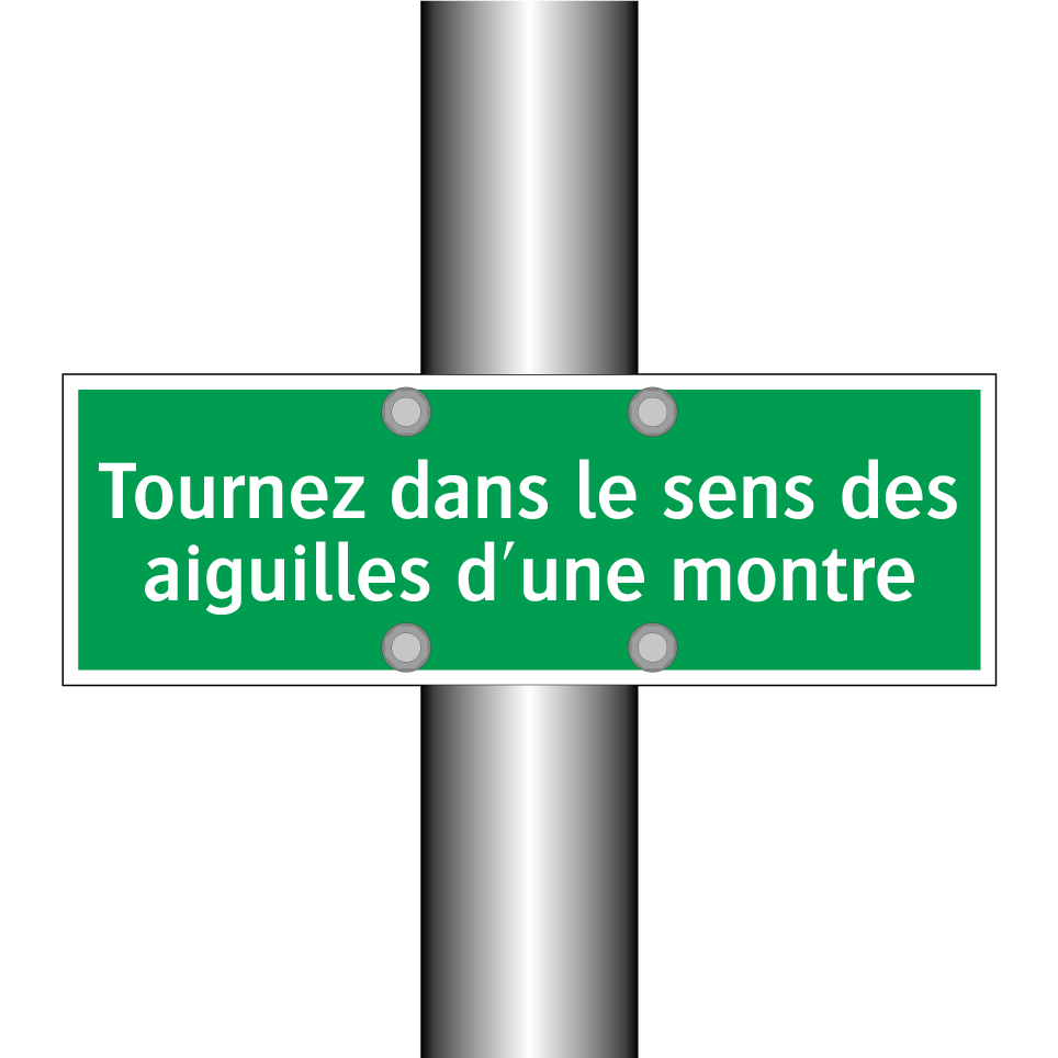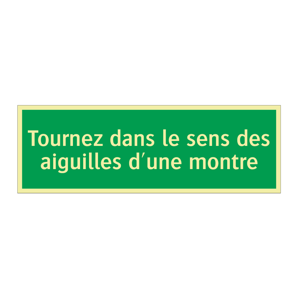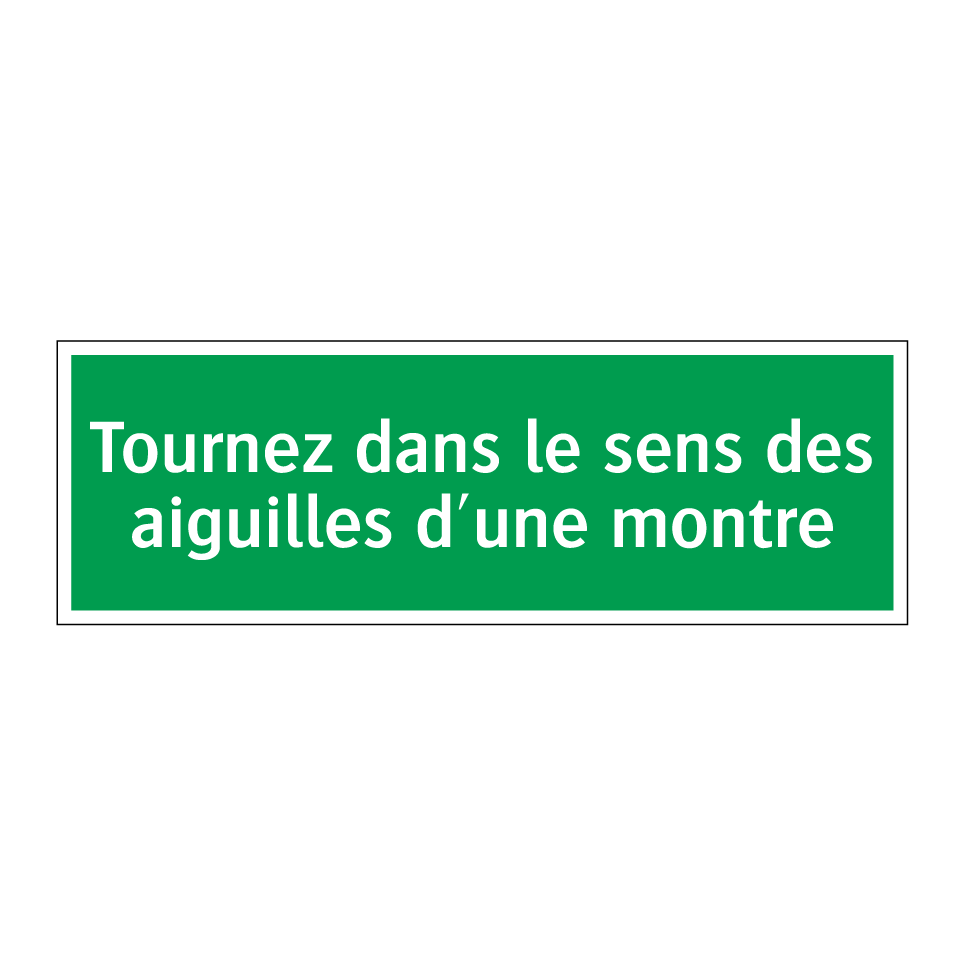 Panneau de secours avec le texte Tournez dans le sens des aiguilles d'une montre