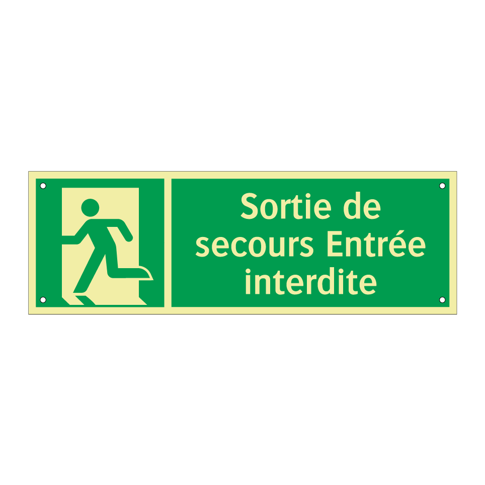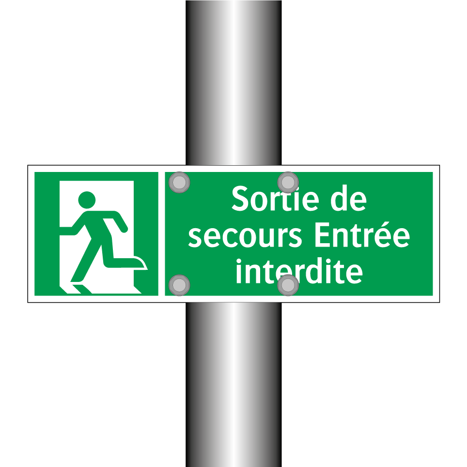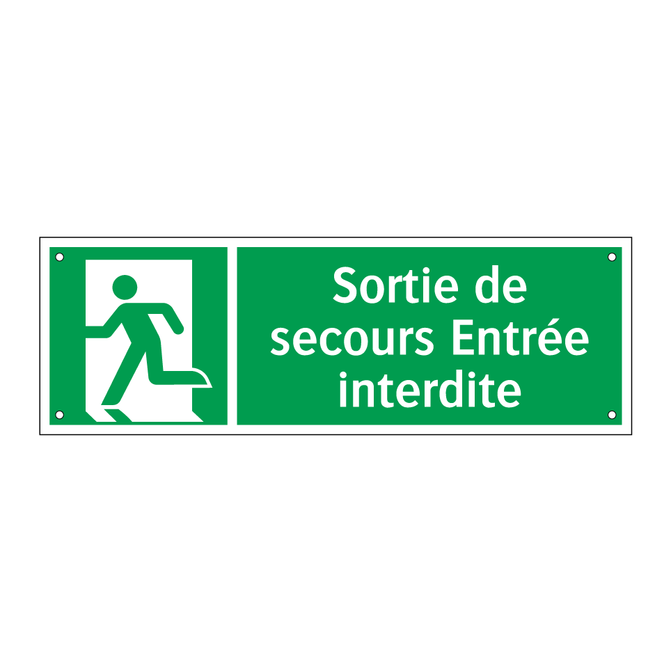 Panneau de secours avec le texte Sortie de secours Entrée interdite et une symbolique claire